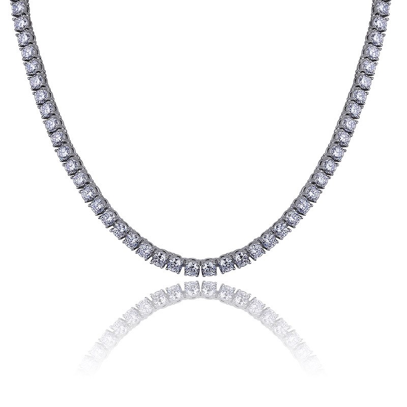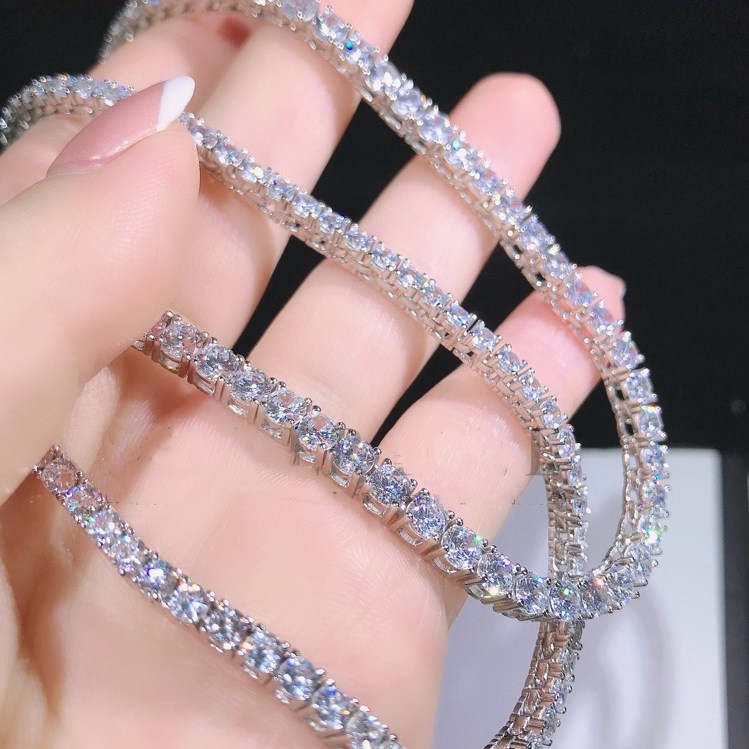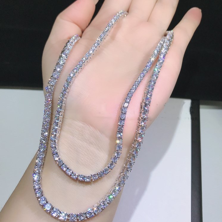 纯18K白金进口莫桑石单排钻项链AU750简约豪迈男女款满钻锁骨链潮