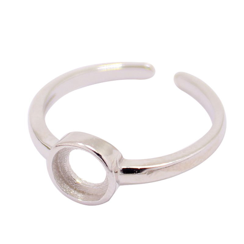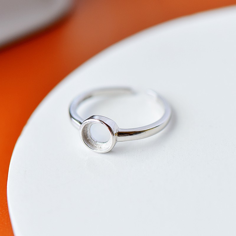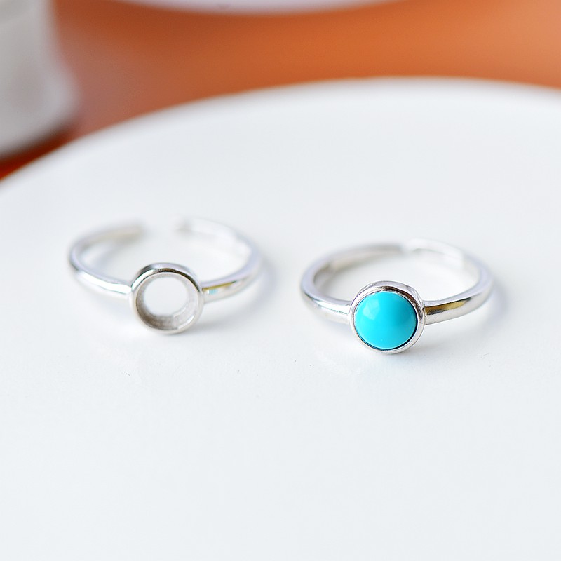 S925纯银戒指空托简约大方女款圆形DIY蜜蜡松石琥珀玉石镶嵌托6*6