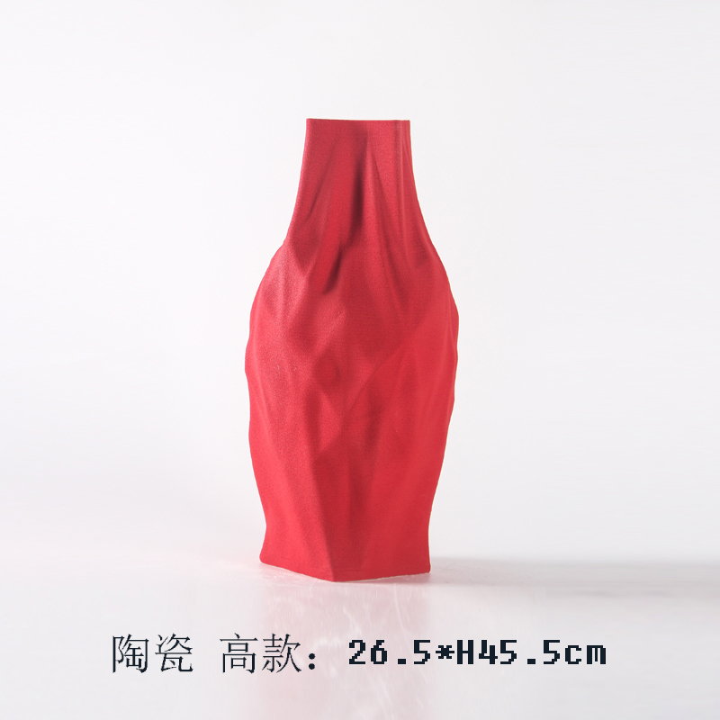现代简约喜庆红色陶瓷花瓶摆件样板房间售楼处酒店客厅花器装饰品