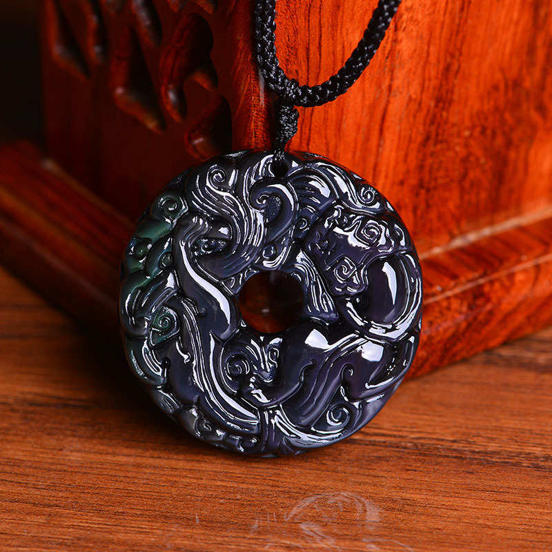 巴西黑曜石貔貅吊坠男女款玉牌双貔貅平安扣玉佩挂件产地货源