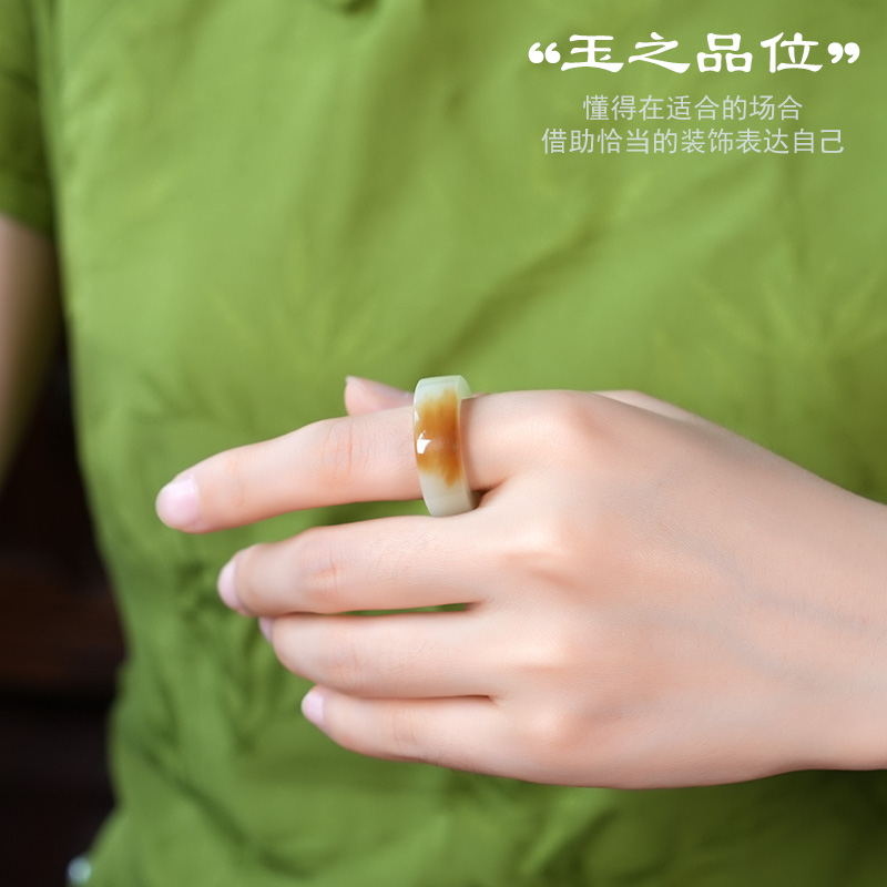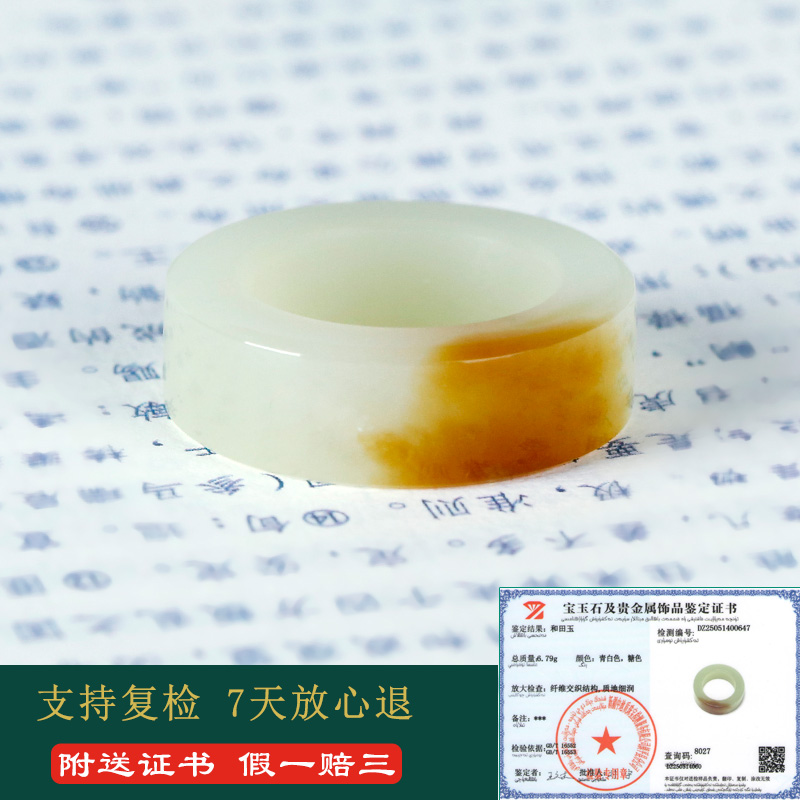 玉说和田玉戒指男女款糖青白玉素面指环扳指圆满富贵玉手饰附证书