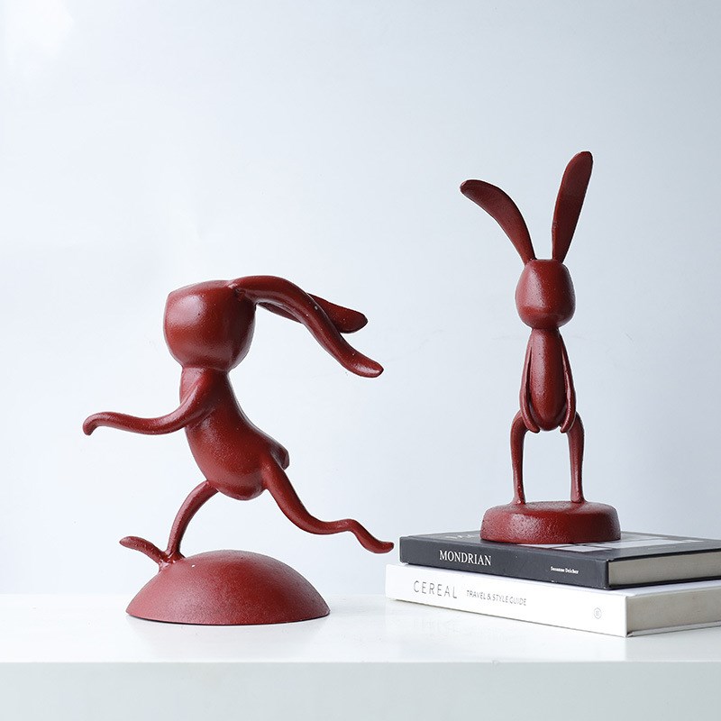 北欧简约抽象金属兔子摆件客厅卧室玄关酒店样板间桌面家居装饰品