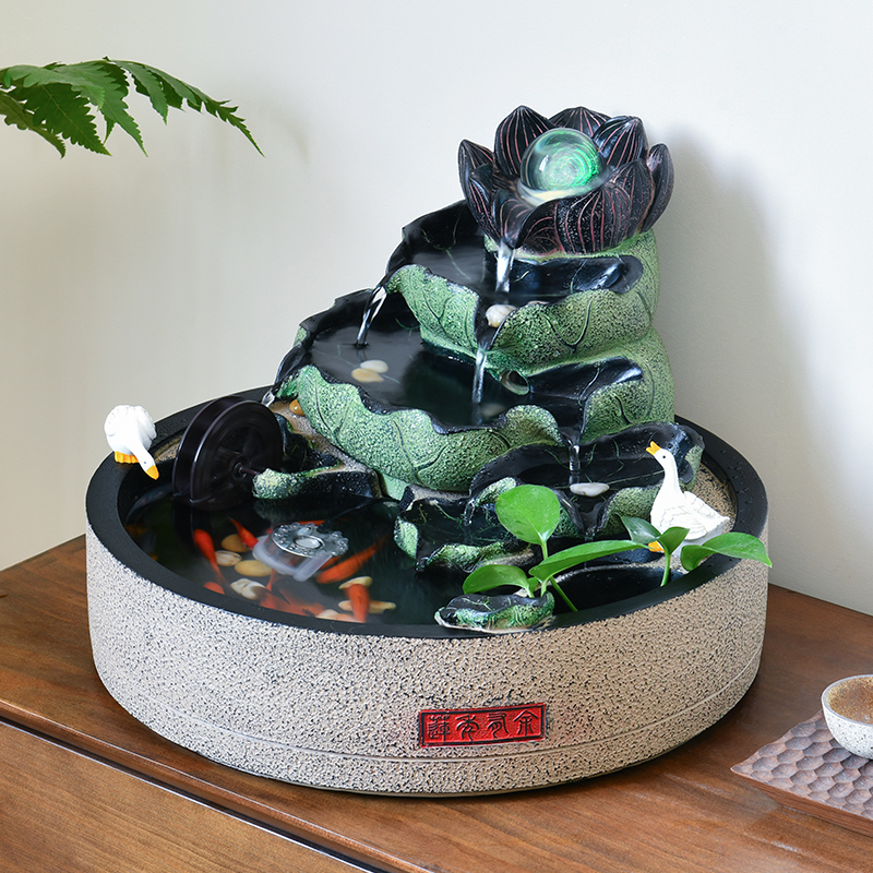 招财中式鱼缸流水生财摆件循环水客厅玄关桌面风水轮装饰喷泉造景