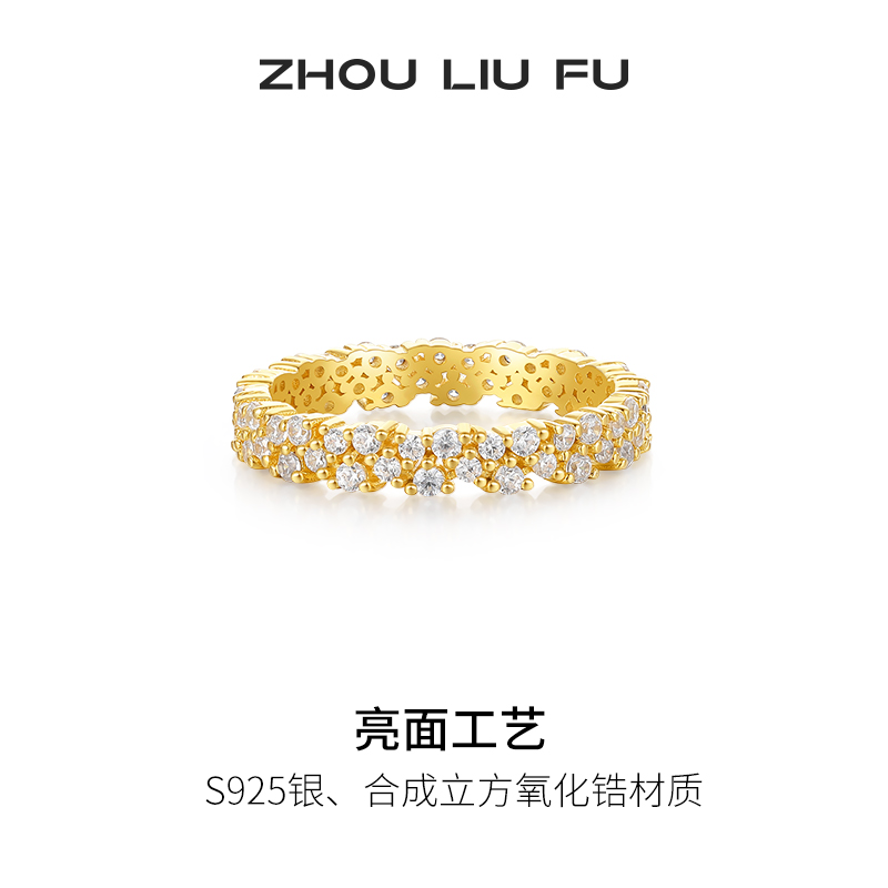 周六福戒指女指环手饰S925银黄金色高级感轻奢小众送女友节日礼物