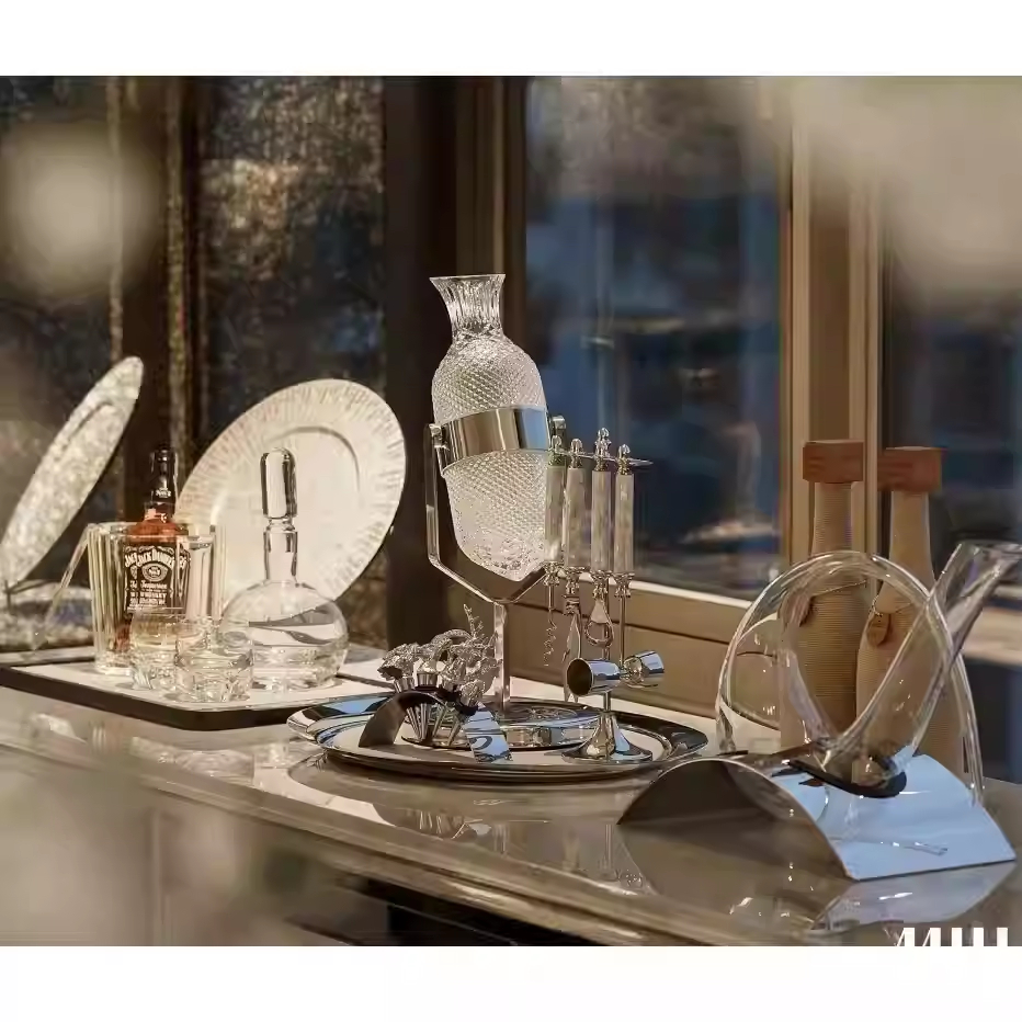 玻璃醒酒器样板间酒柜酒架酒具酒杯道具红酒洋酒水吧台软装摆件