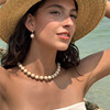 白化石圆形串珠项链女轻奢小众设计高级感简约气质百搭耳环锁骨链