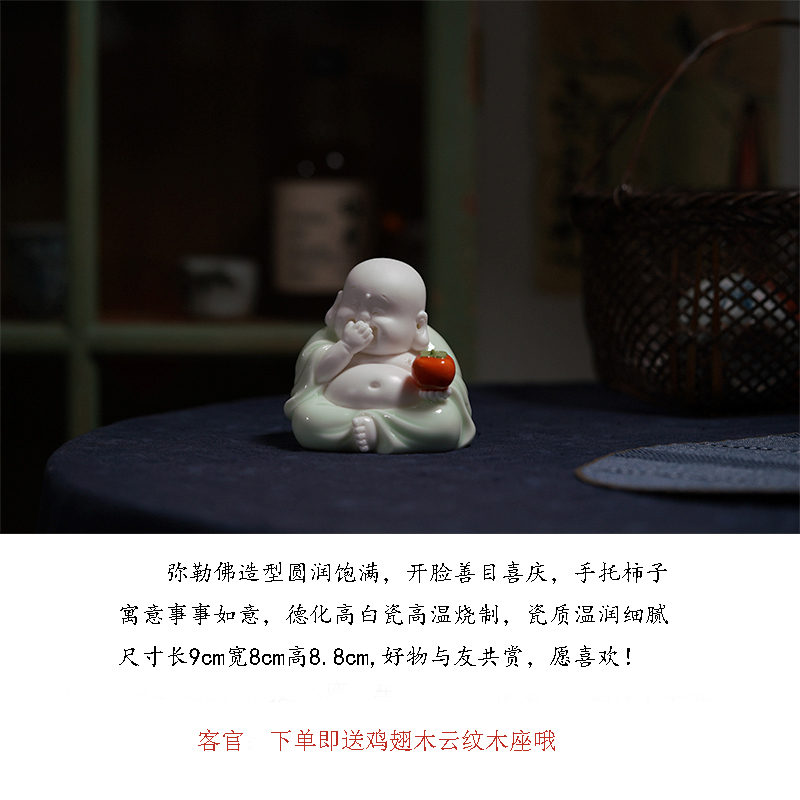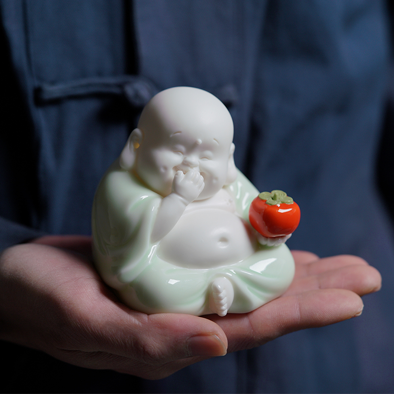 陶瓷弥勒佛事事如意柿子笑佛大肚佛客厅家居饰R品桌面摆件工艺品