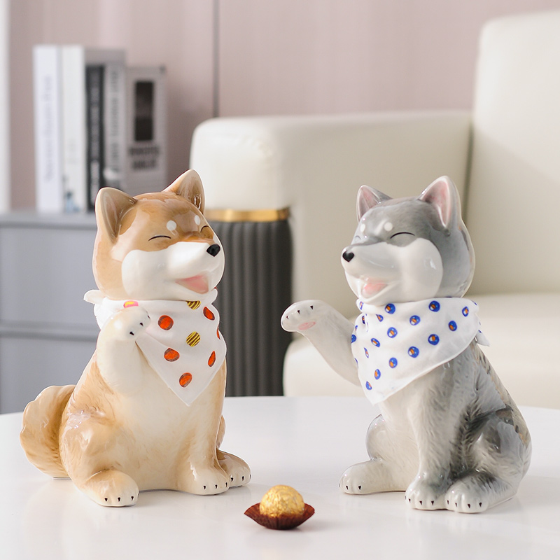 招财犬陶瓷摆件狗客厅创意家居装饰品可爱办公室桌面鞋柜玄关摆设