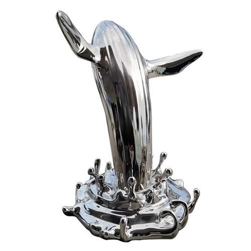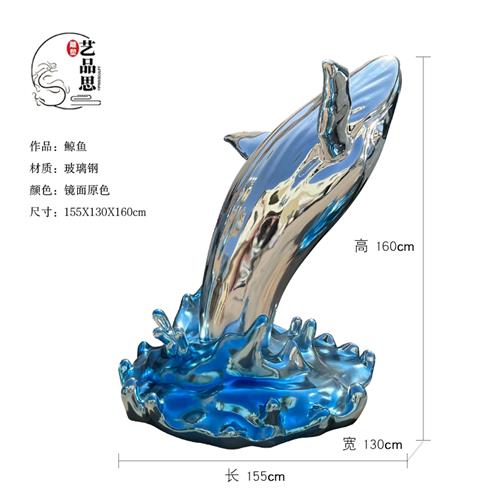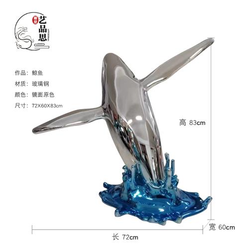 玻璃钢鲸鱼浪花雕塑不锈钢定制创意水景酒店门厅海洋动物摆件装饰