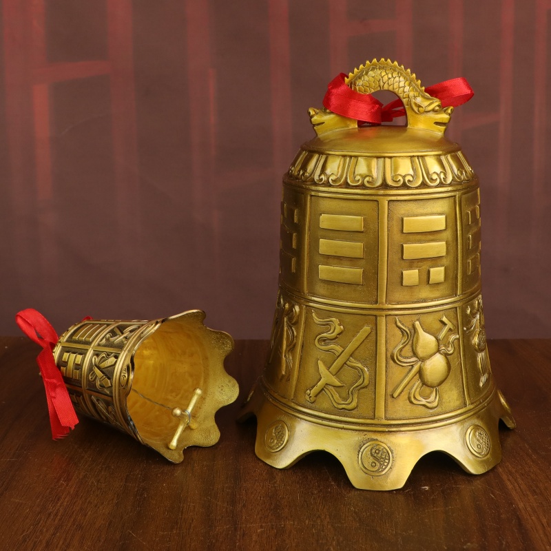 黄铜八仙钟挂件13厘米八宝铜铃铛挂件八卦钟13公分八仙铜钟