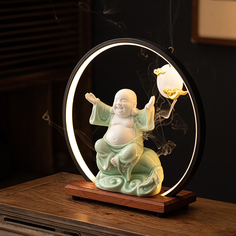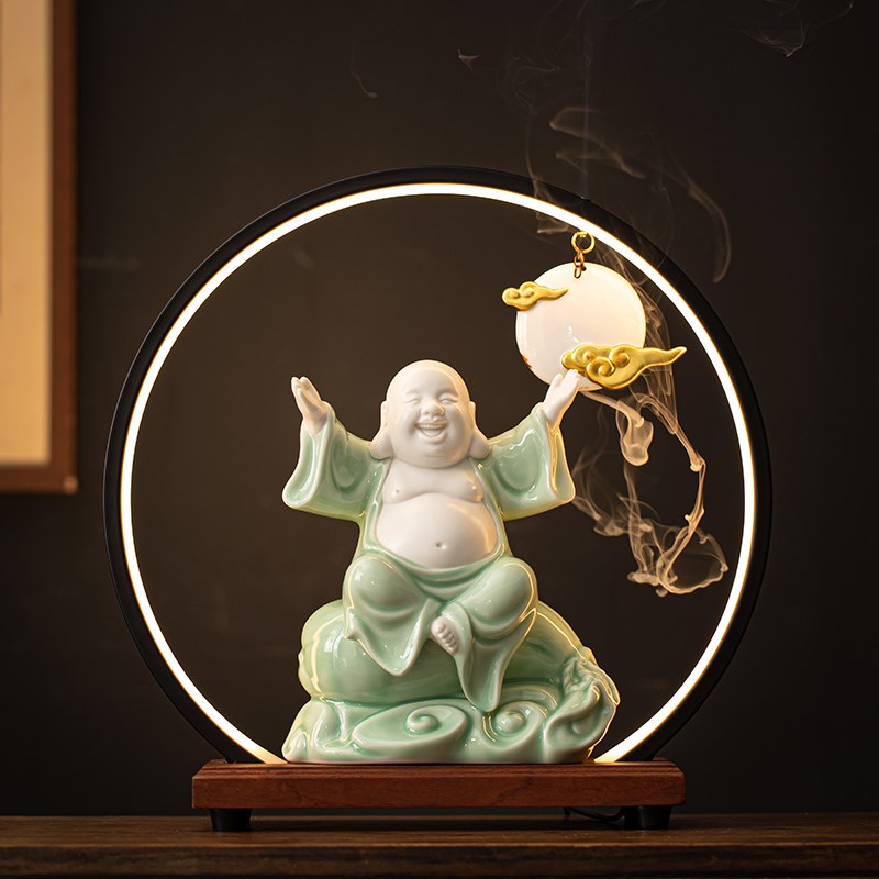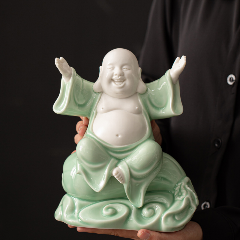 创意陶瓷布袋笑佛招财弥勒佛桌面人物工艺品摆件微景观造景装饰品