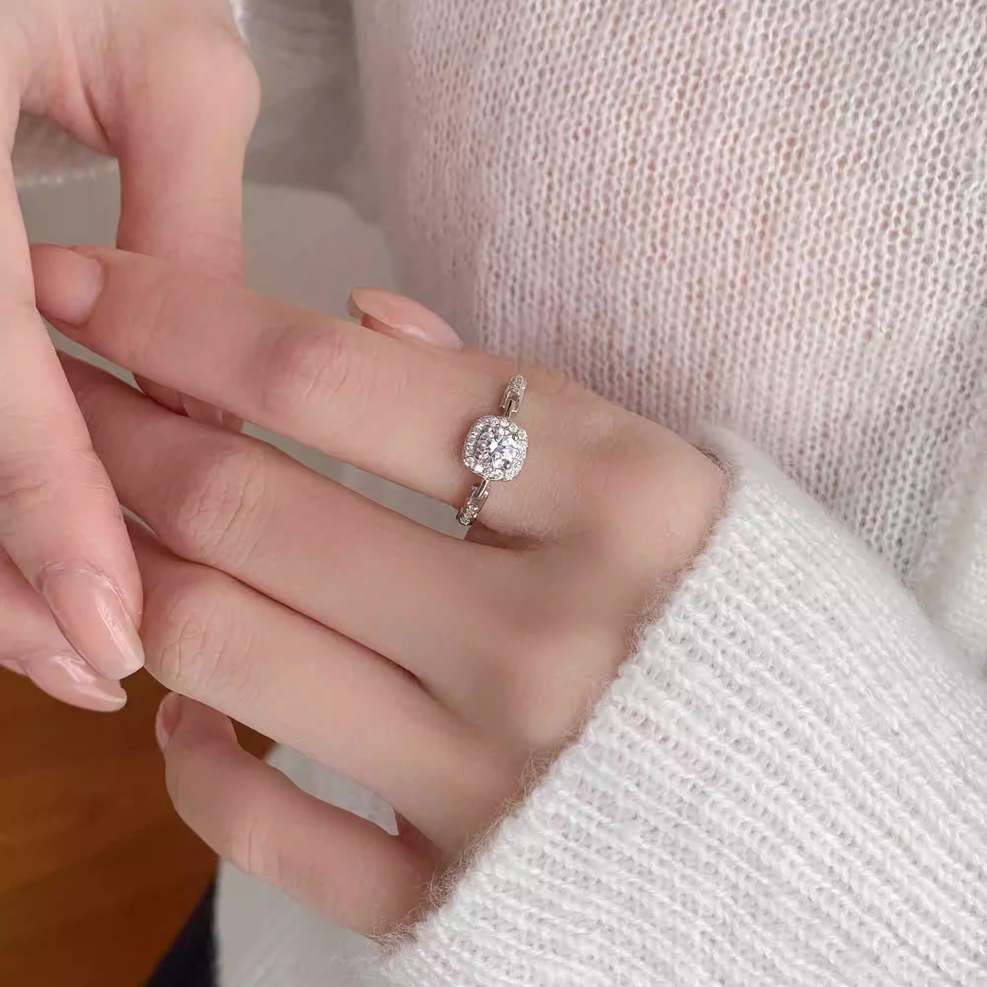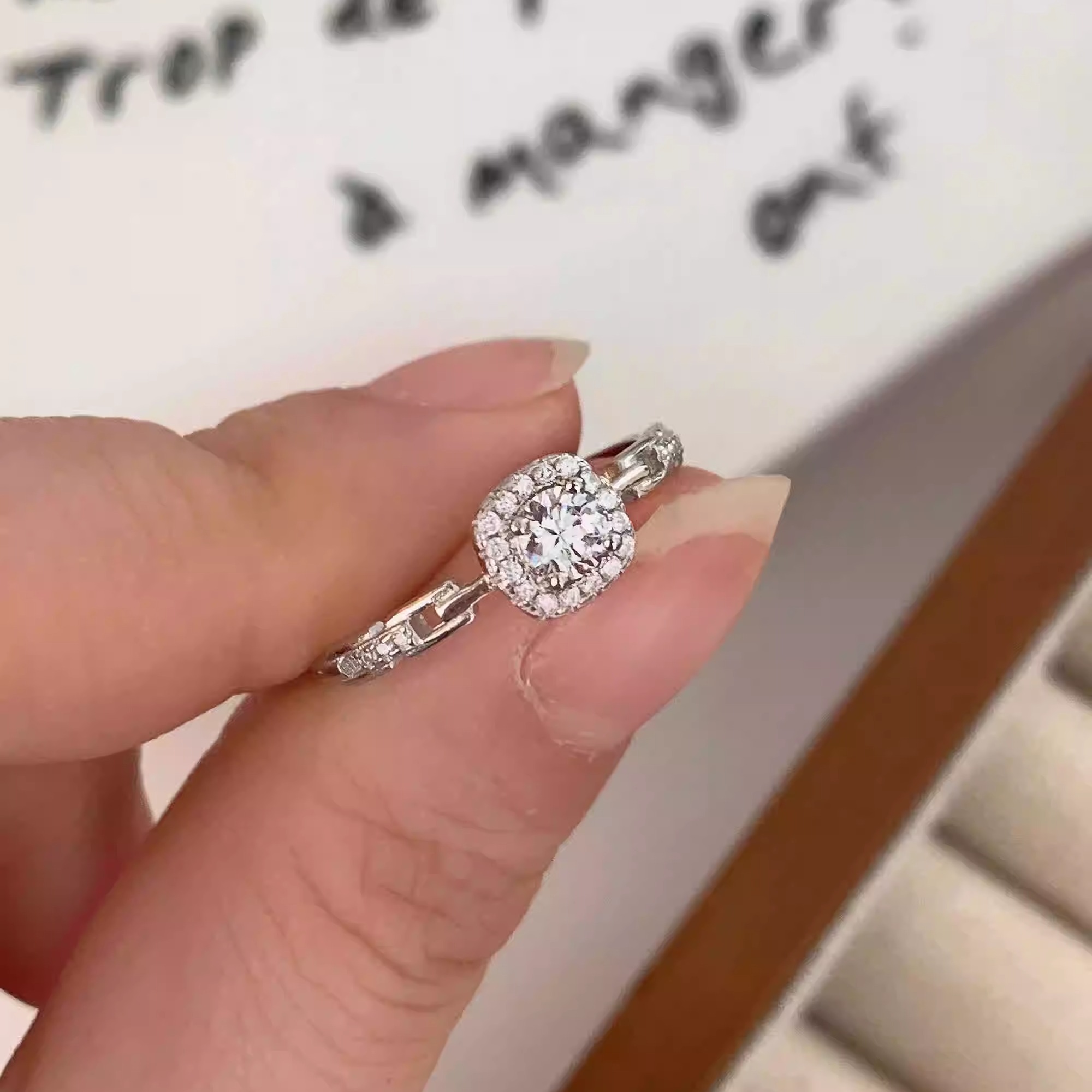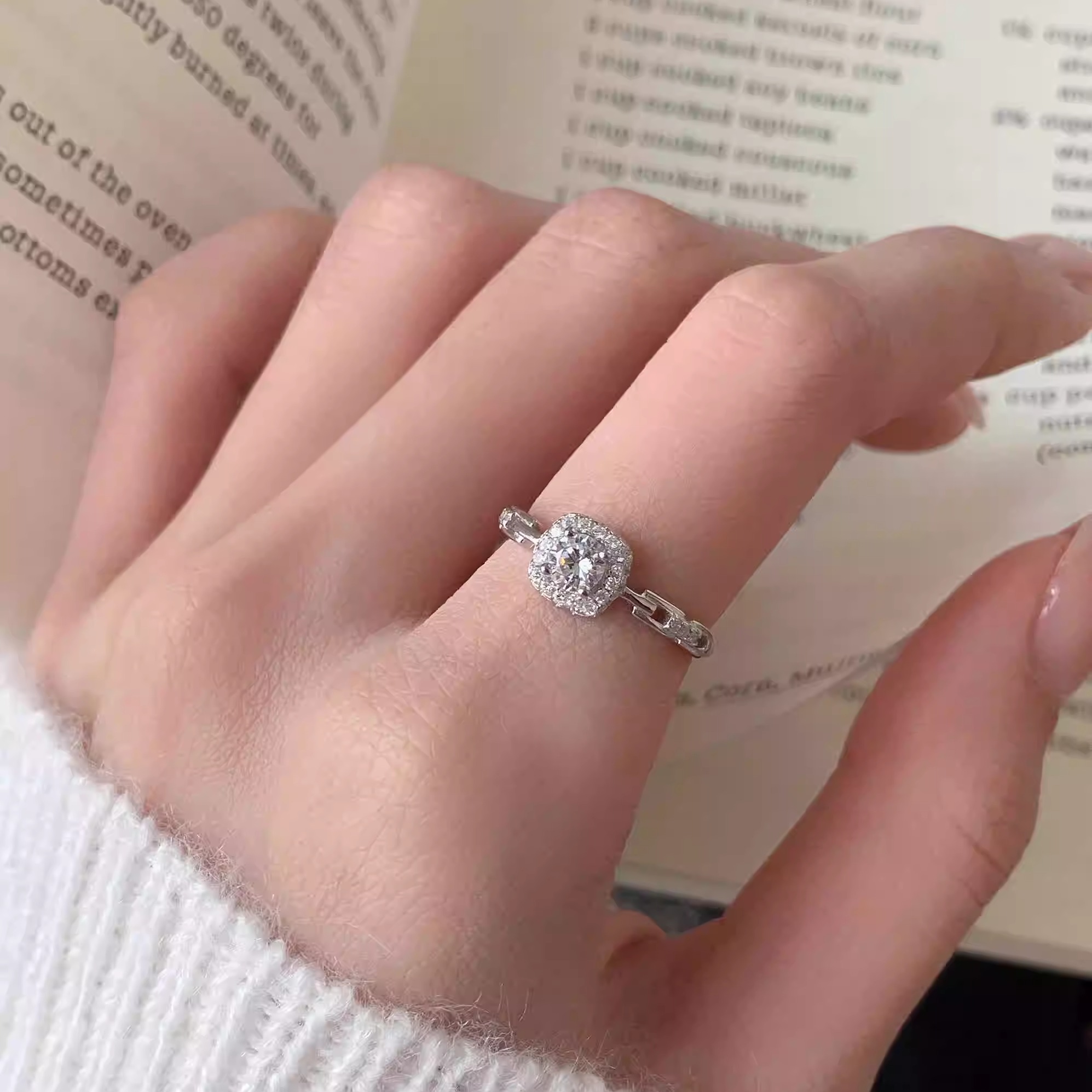 纯银锆石爆闪方钻链条戒指女小众设计轻奢高级感指环2024新款时尚