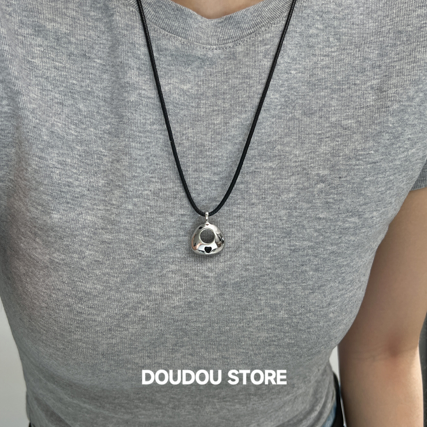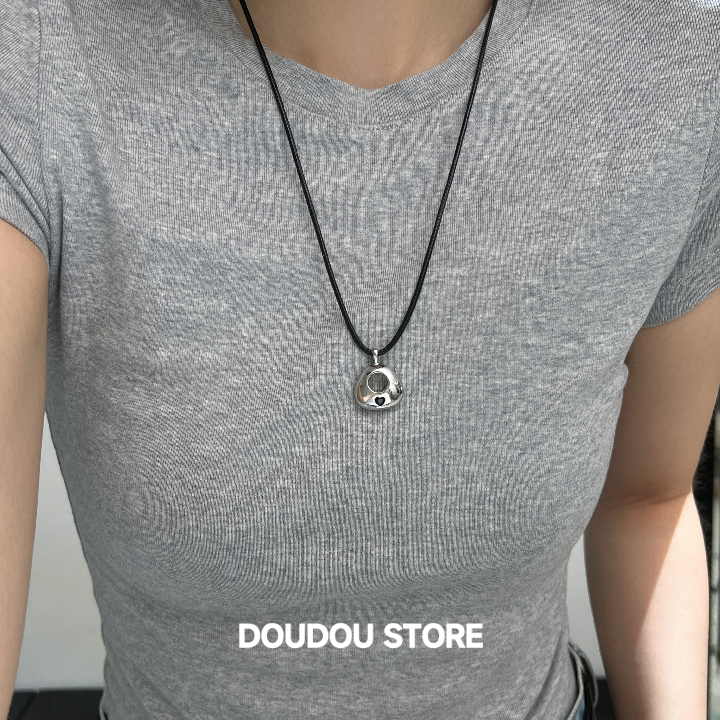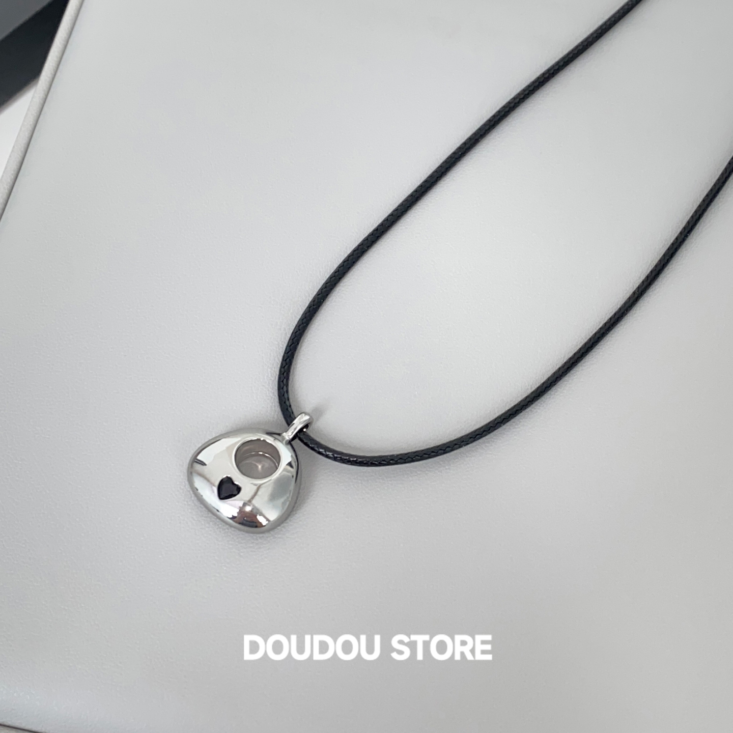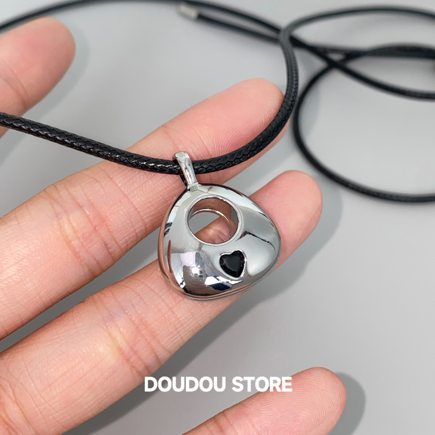 DOUDOUSTORE保色黑爱心好质感黑皮绳项链可调节女黑色爱心吊坠