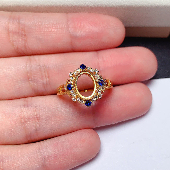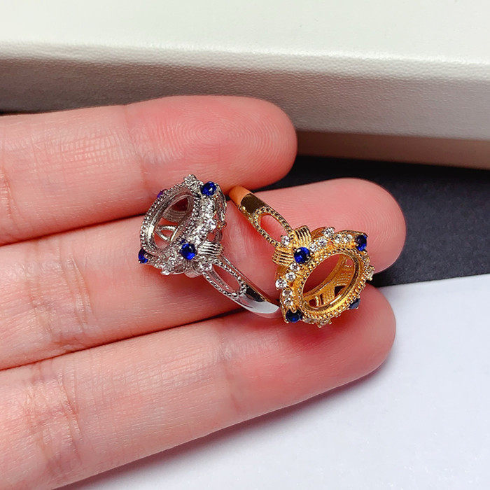 s925纯银活口戒指空托椭圆形6*8mm 彩宝玉石 银饰指环 未镶嵌 x