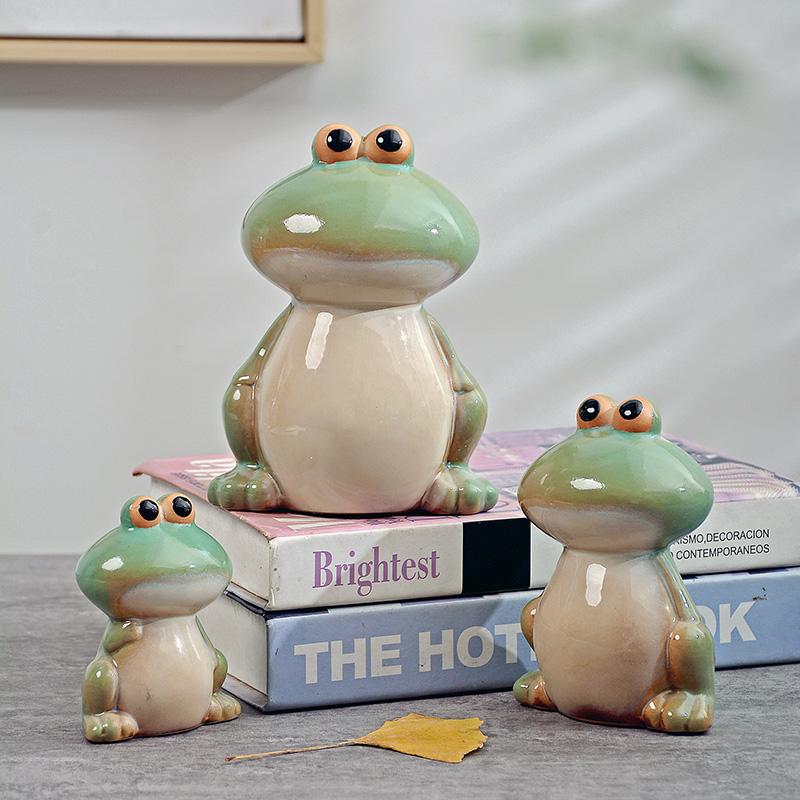 三只青蛙小摆件家居装饰简约创意可爱桌面儿童房庭院陶瓷动物摆设