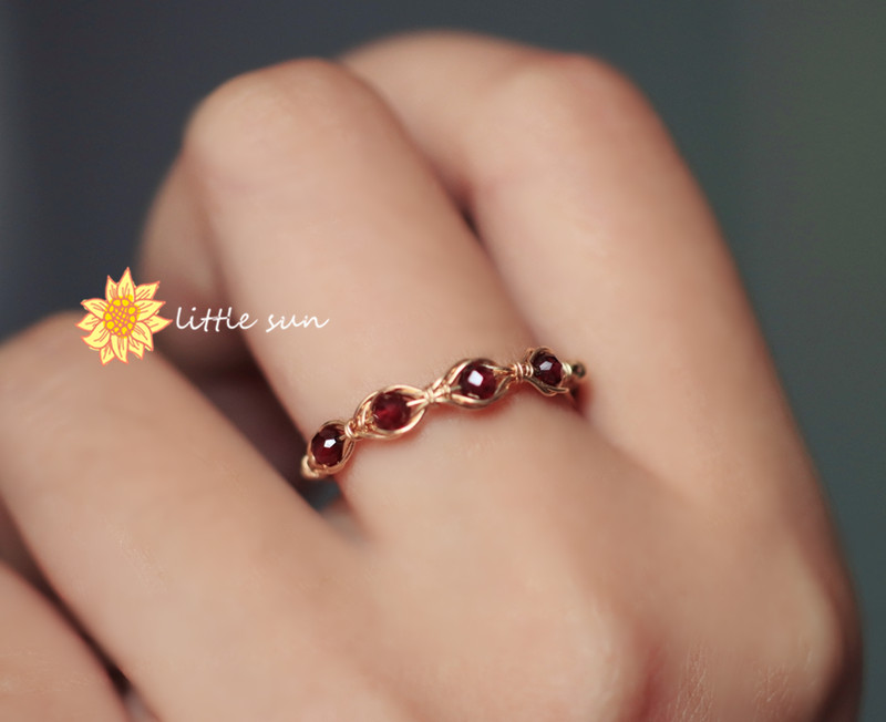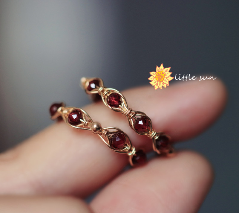 太阳手工 14K包金红石榴石ins小众设计感复古编织缠绕戒指女超闪