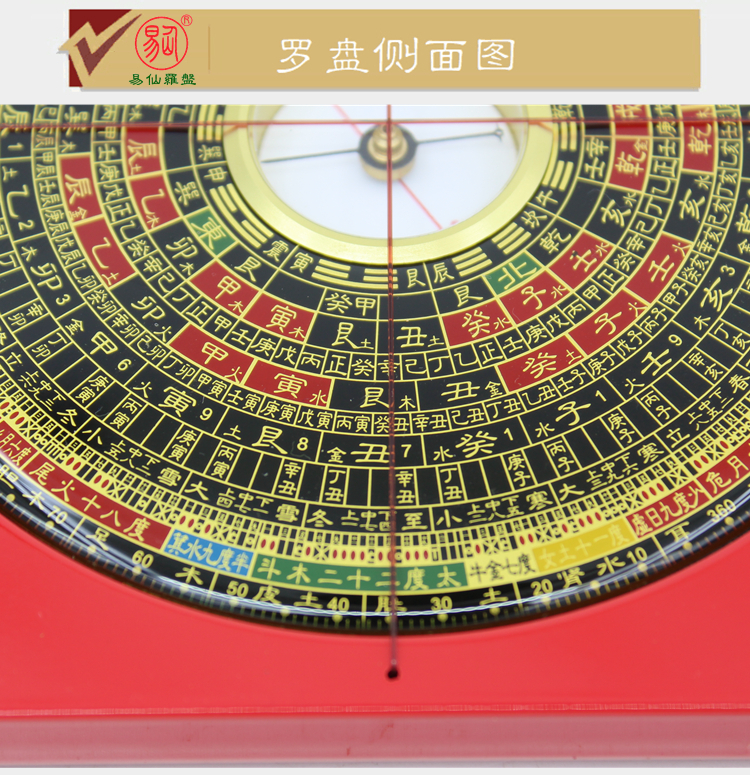 易仙强磁针4寸2三合罗盘 精准指南针红色电木罗庚盘随身便携 摆件