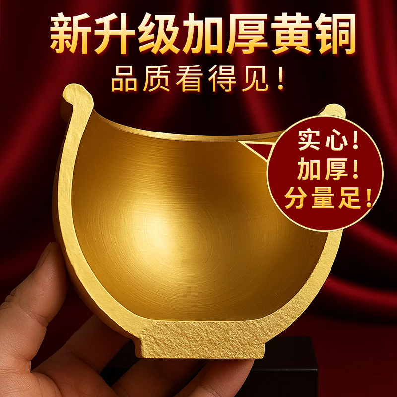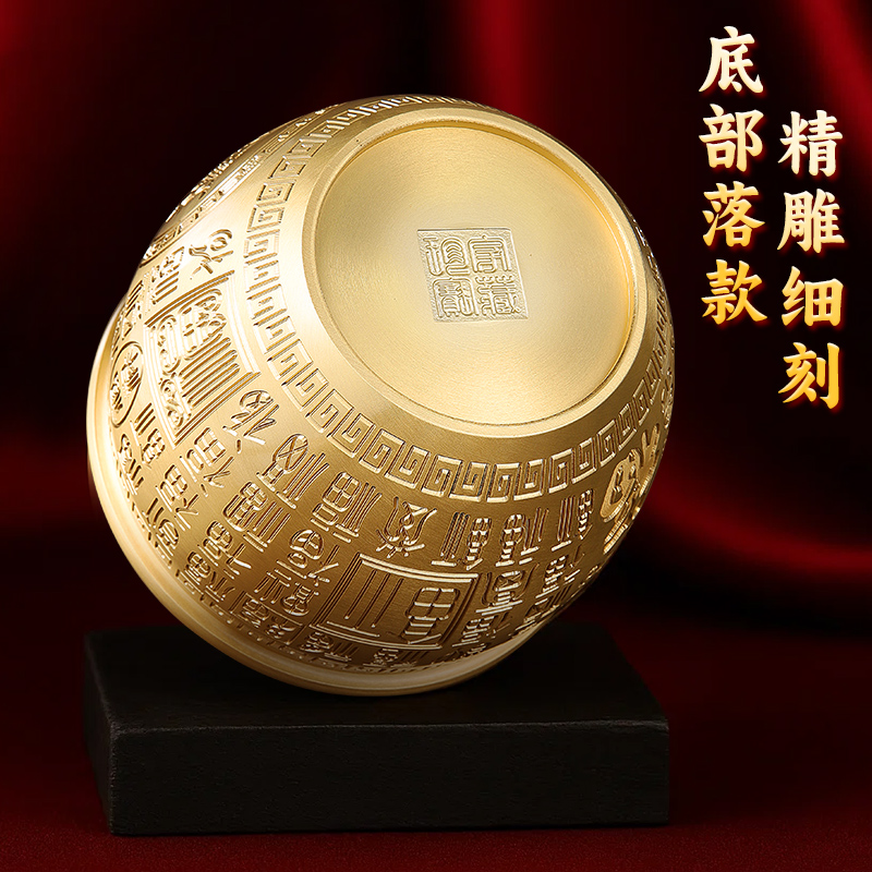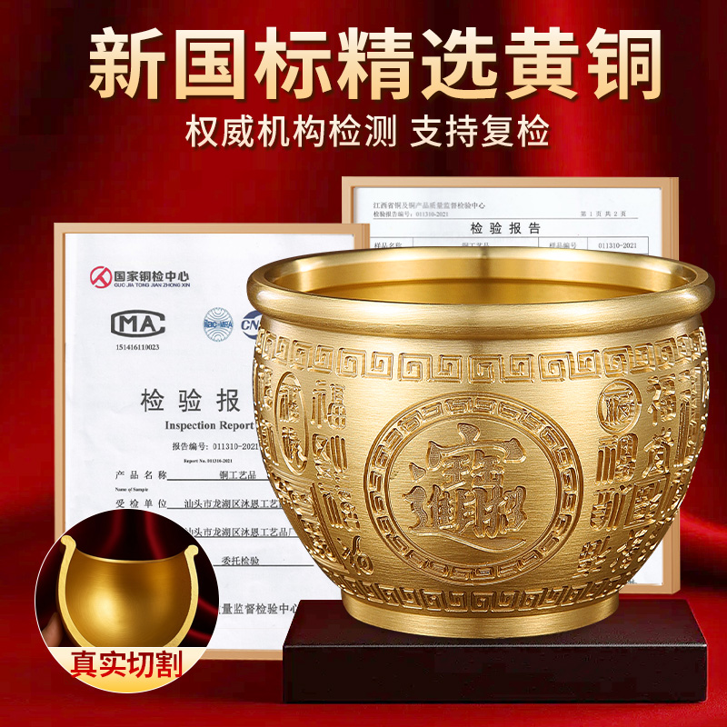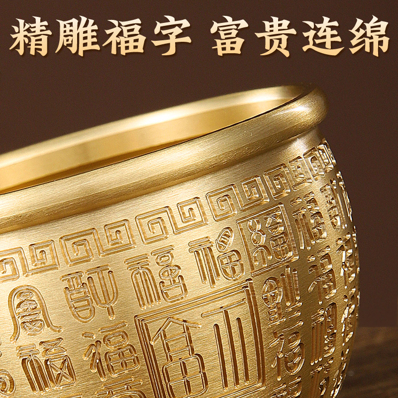 黄铜米缸百福缸纯黄铜摆件聚宝盆新居乔迁办公室客厅玄关元宝桌面