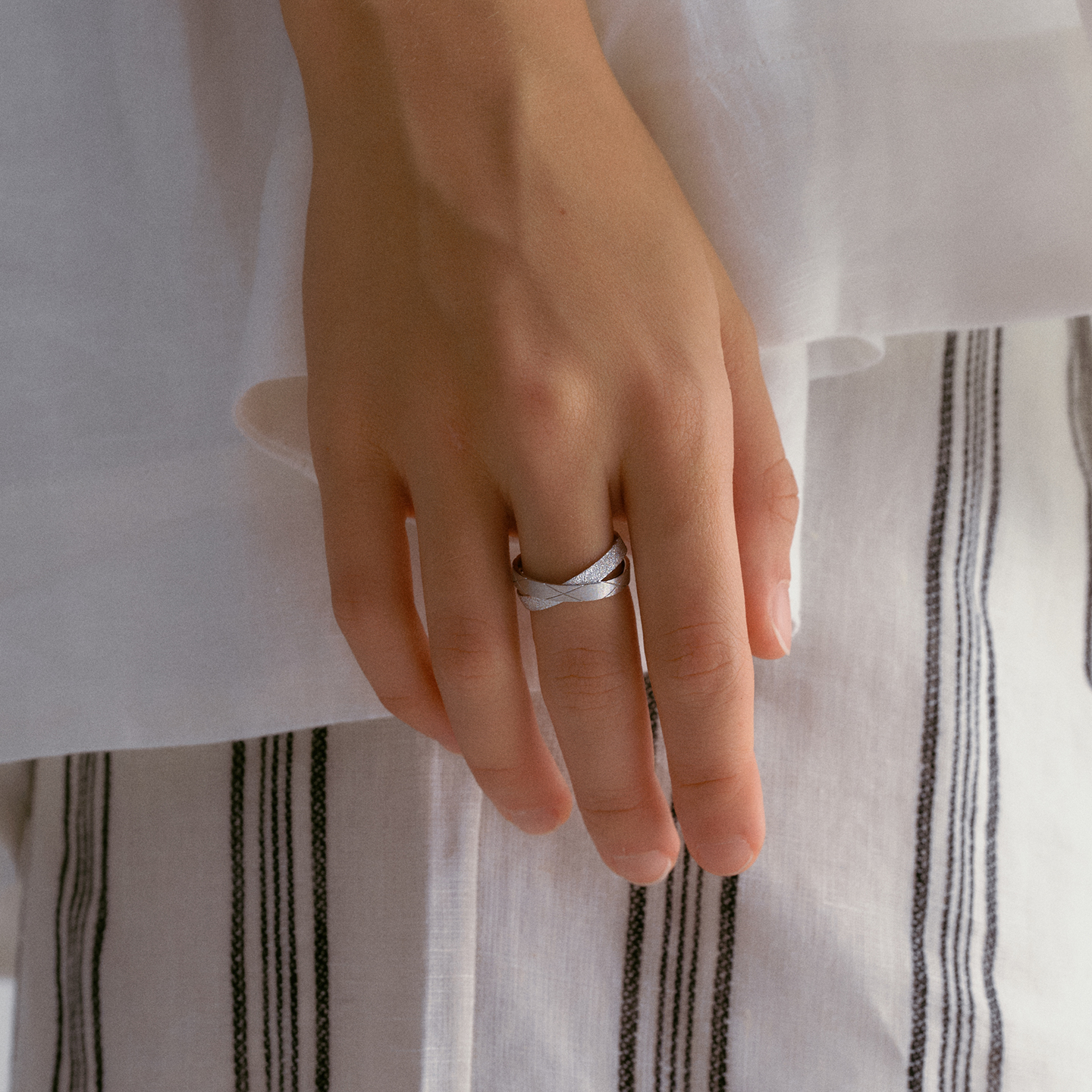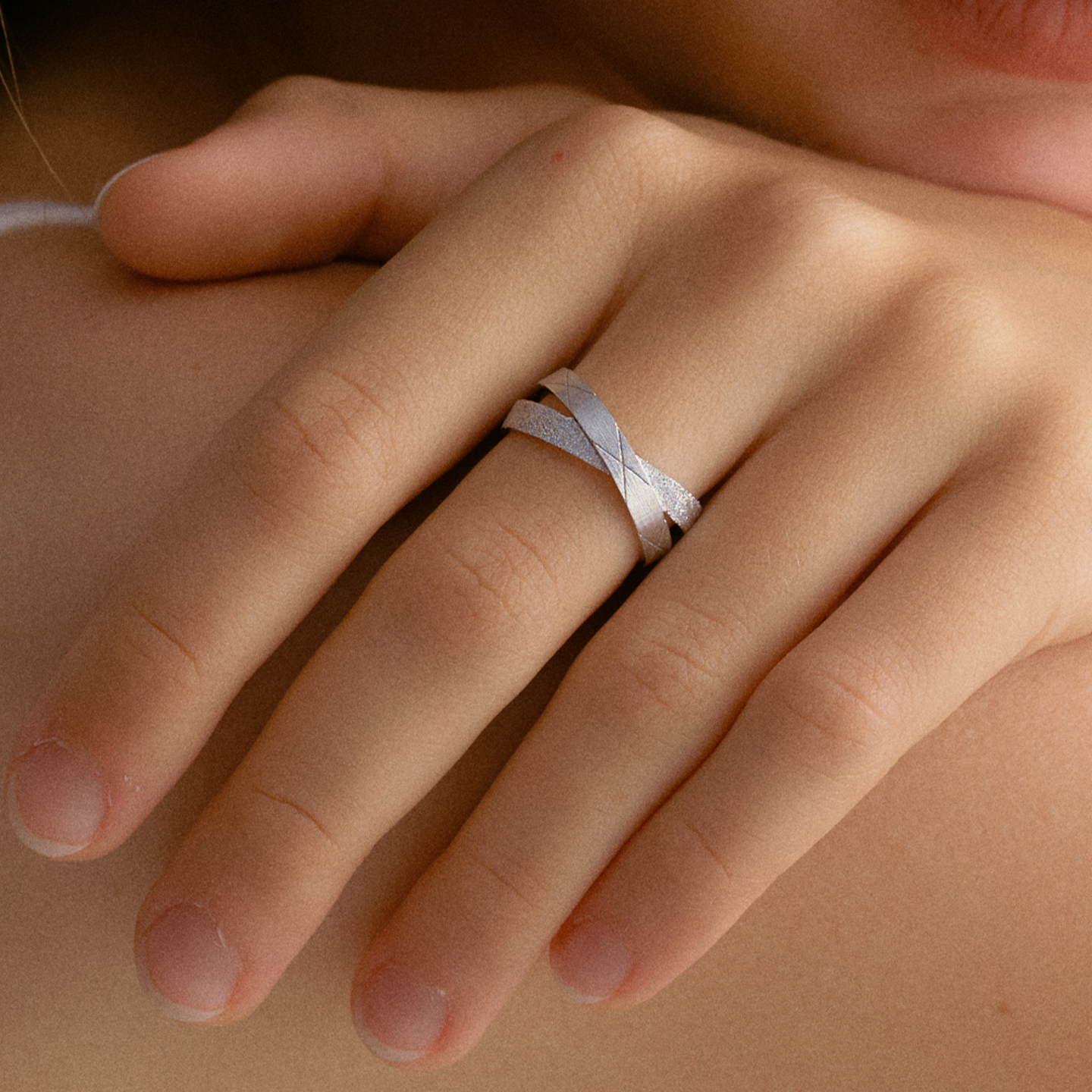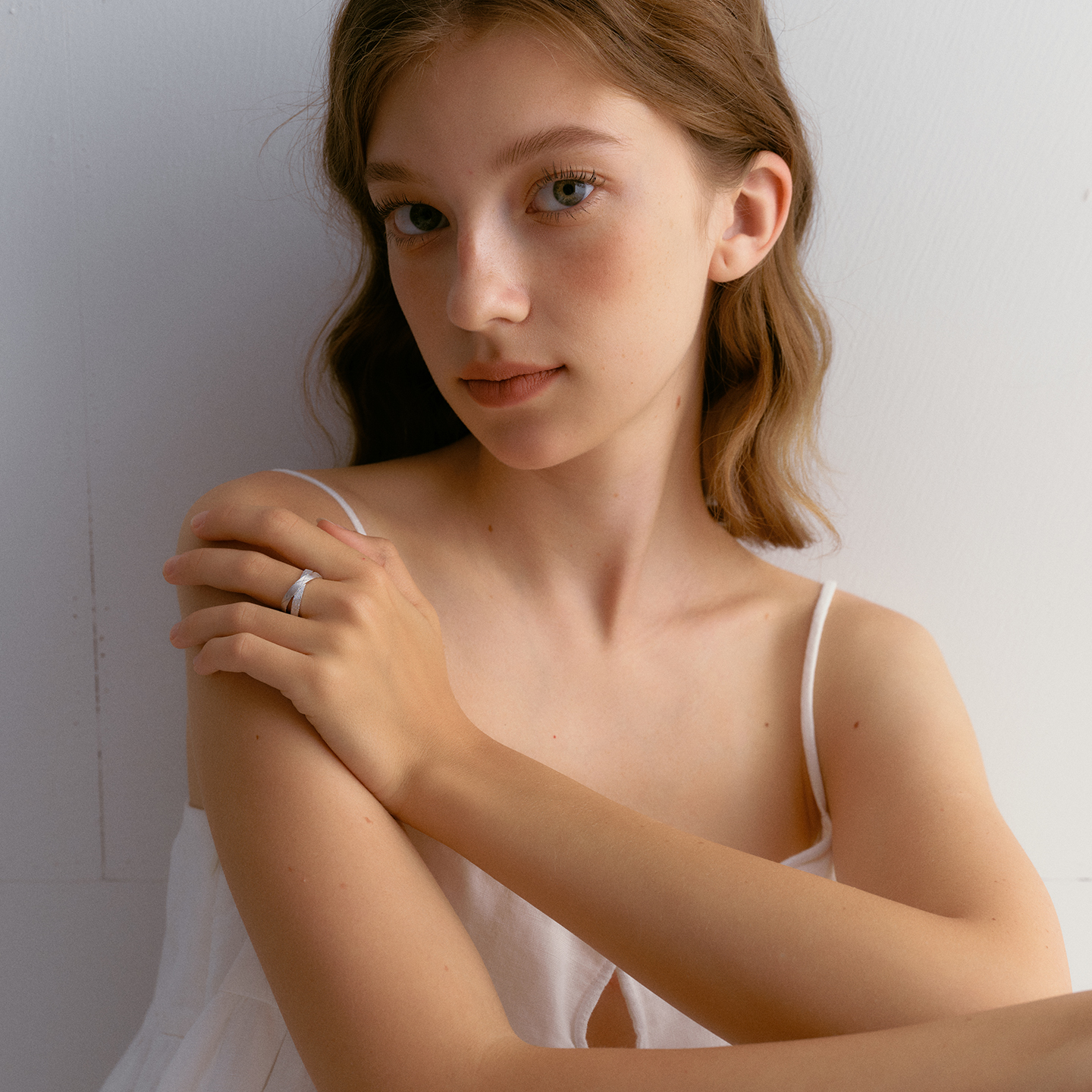 CINNLER「白山茶的香颂曲」菱格拉丝设计双圈925银轻奢气质戒指女
