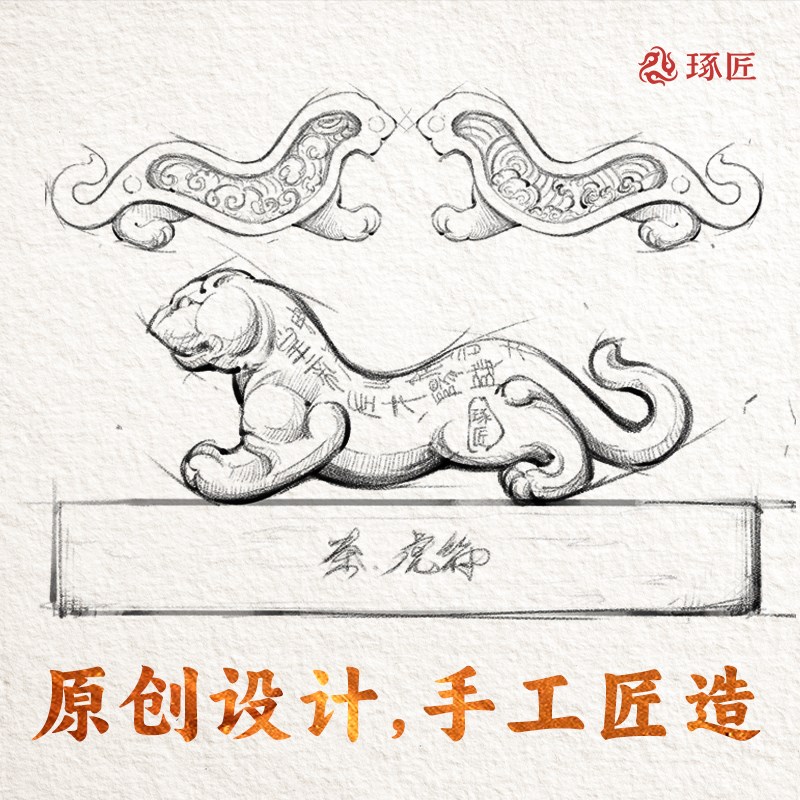 琢匠琥珀铜虎符摆件办公室好物老虎手把件兵符桌面装饰品文玩礼物