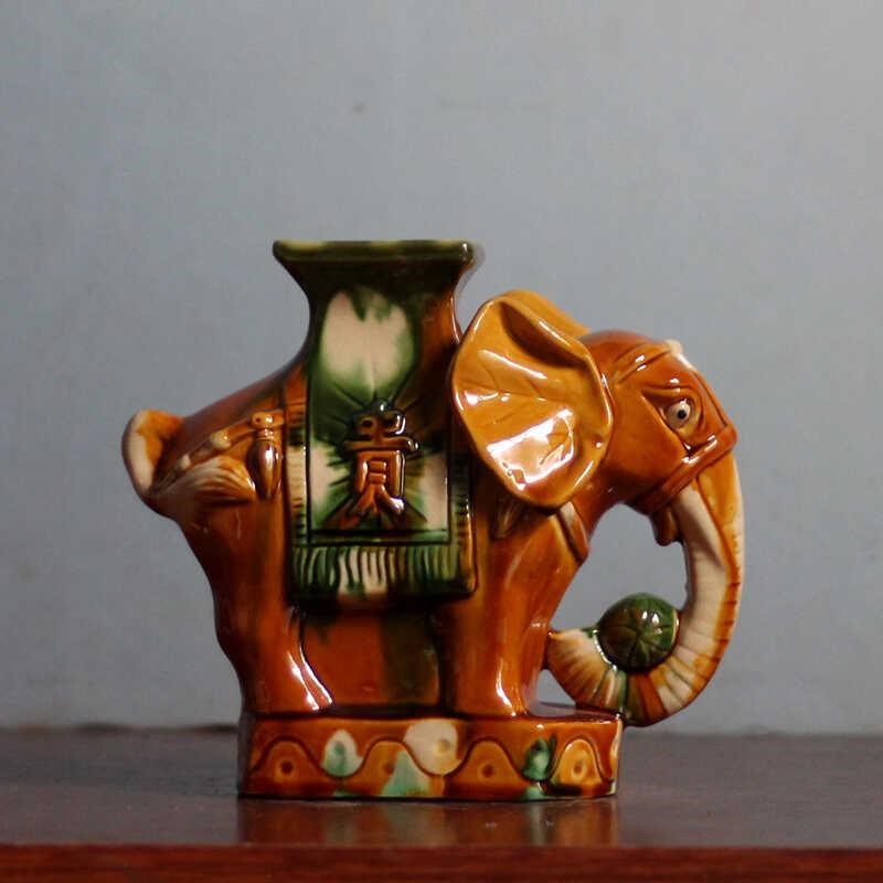 唐三彩陶瓷乔g迁送福象桌面摆件洛阳旅游纪念品装饰物高颜值艺术