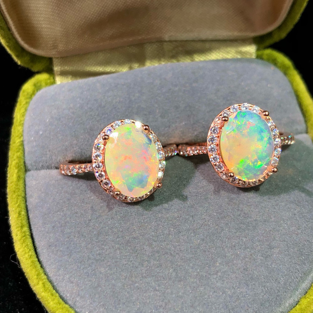 白色欧泊石 精致唯美女戒指925纯银镀18K白金手饰食指指环原创