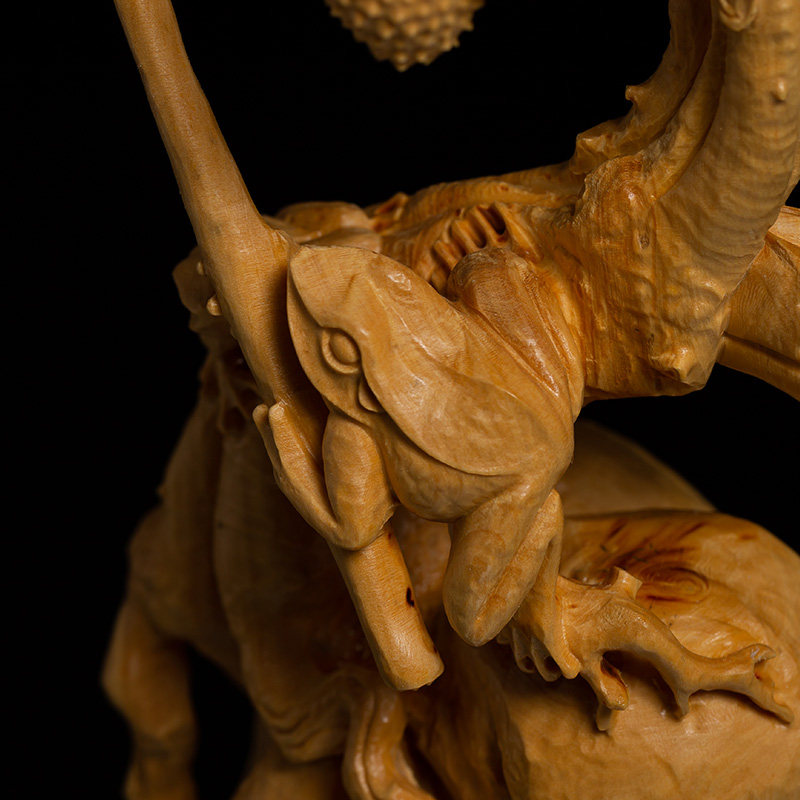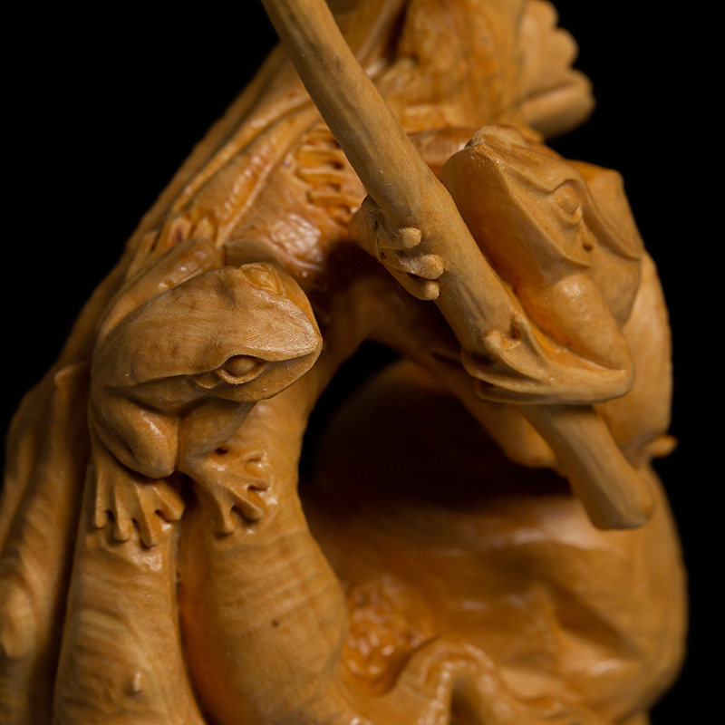 小叶黄杨木创意实木精品动物摆件青蛙金蟾雕刻工艺品木雕大吉大利