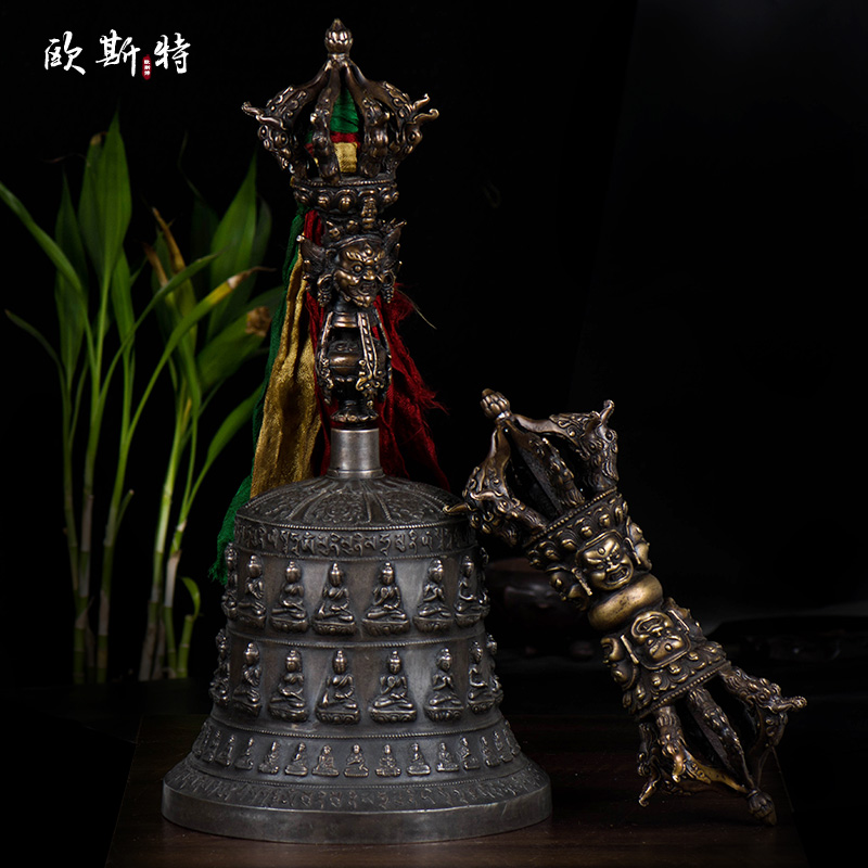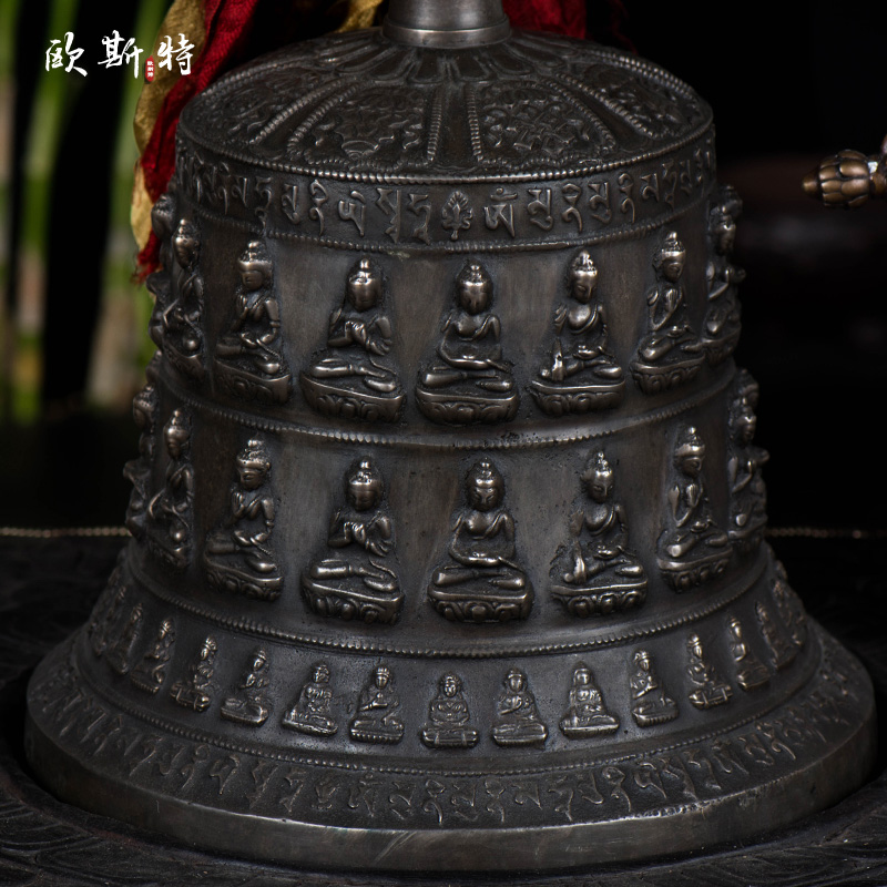 尼泊尔手工艺品青铜做旧金刚摆件 佛具用品供具九股大铃铛供具
