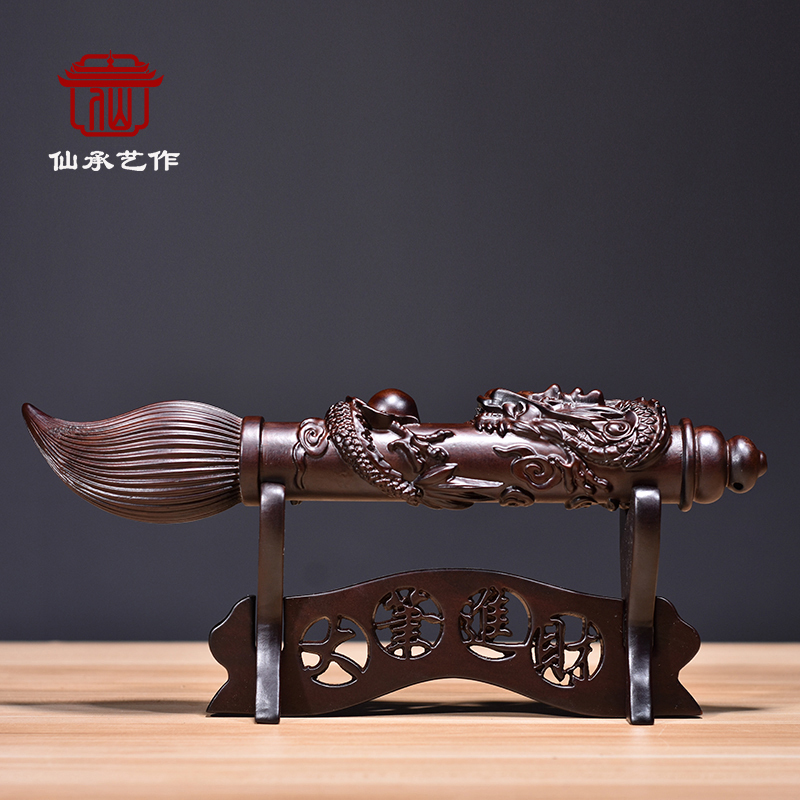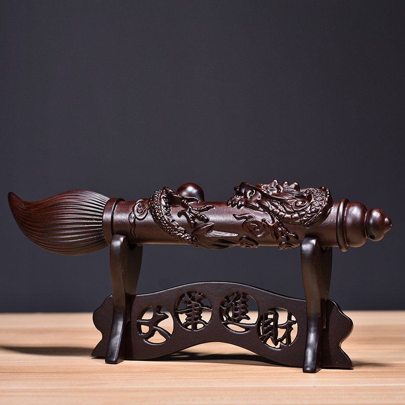 黑檀实木雕刻文昌笔摆件大笔进财红木家居店铺装饰工艺品开业送礼