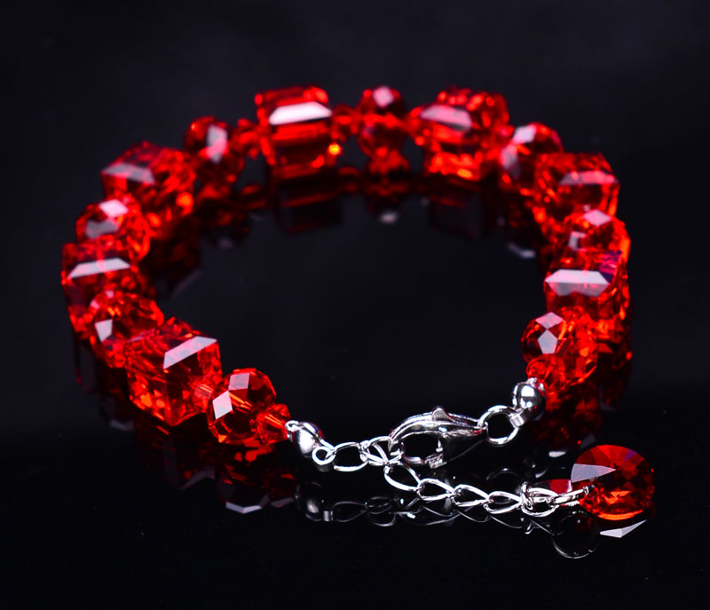 大红闪亮方糖手链女奥地利水晶魔方手串饰品纯银2023年新小众高级