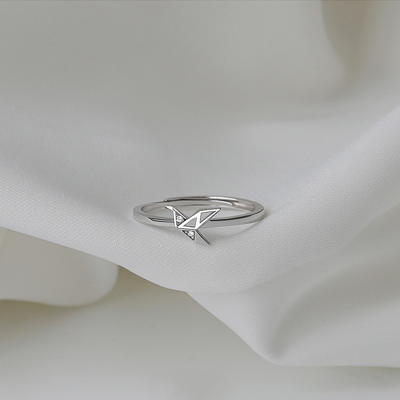 S925纯银千纸鹤戒指女时尚个性开口食指戒轻奢小众精致设计高级感