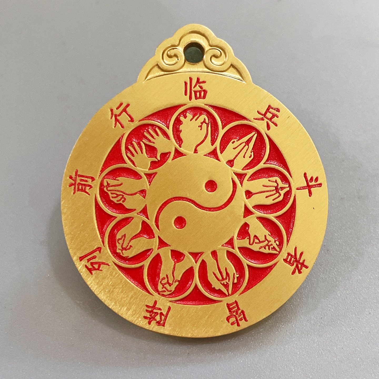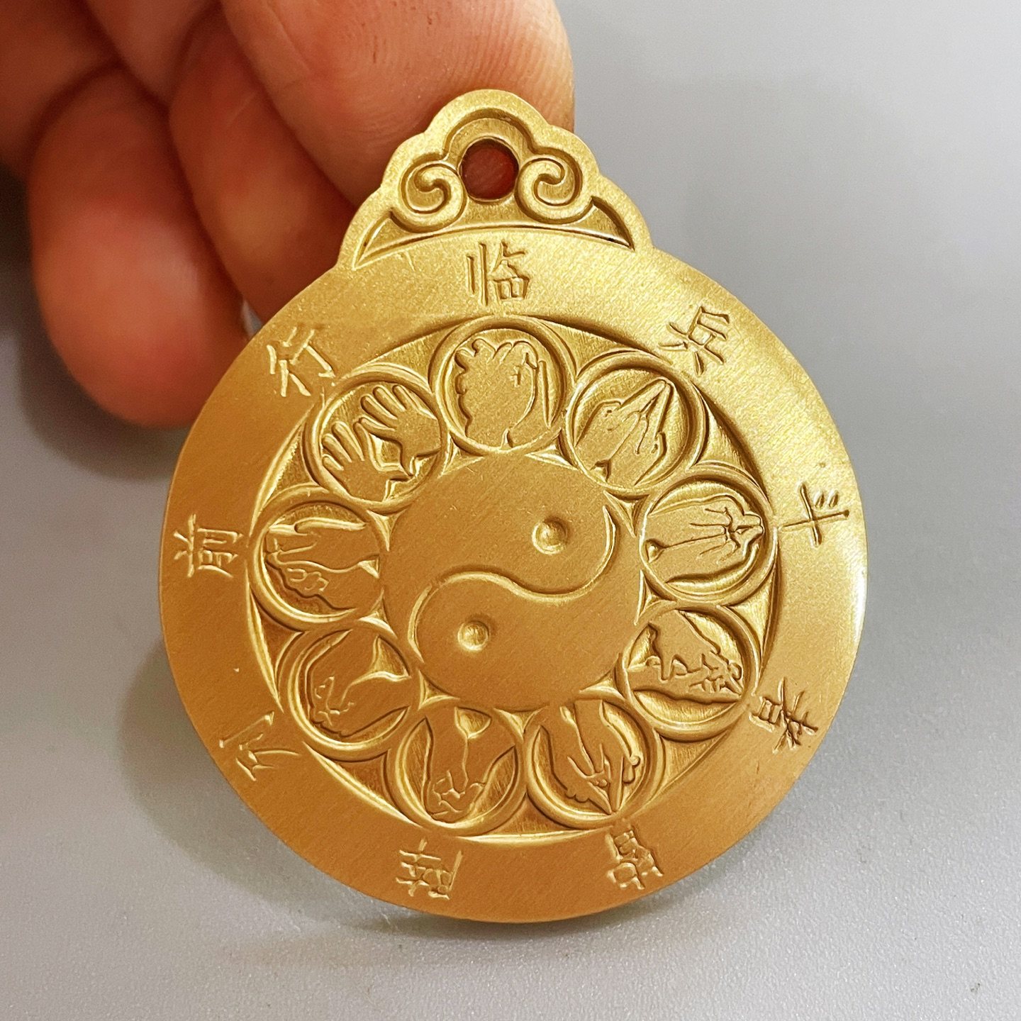 九字真言道家双面铜牌挂件临兵斗者阵列前行十字天经背面金属通用
