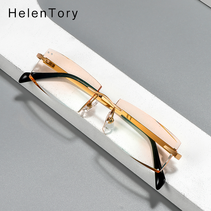 无框钻石切边近视眼镜八孔无螺丝结构近视远视可配防蓝T8118