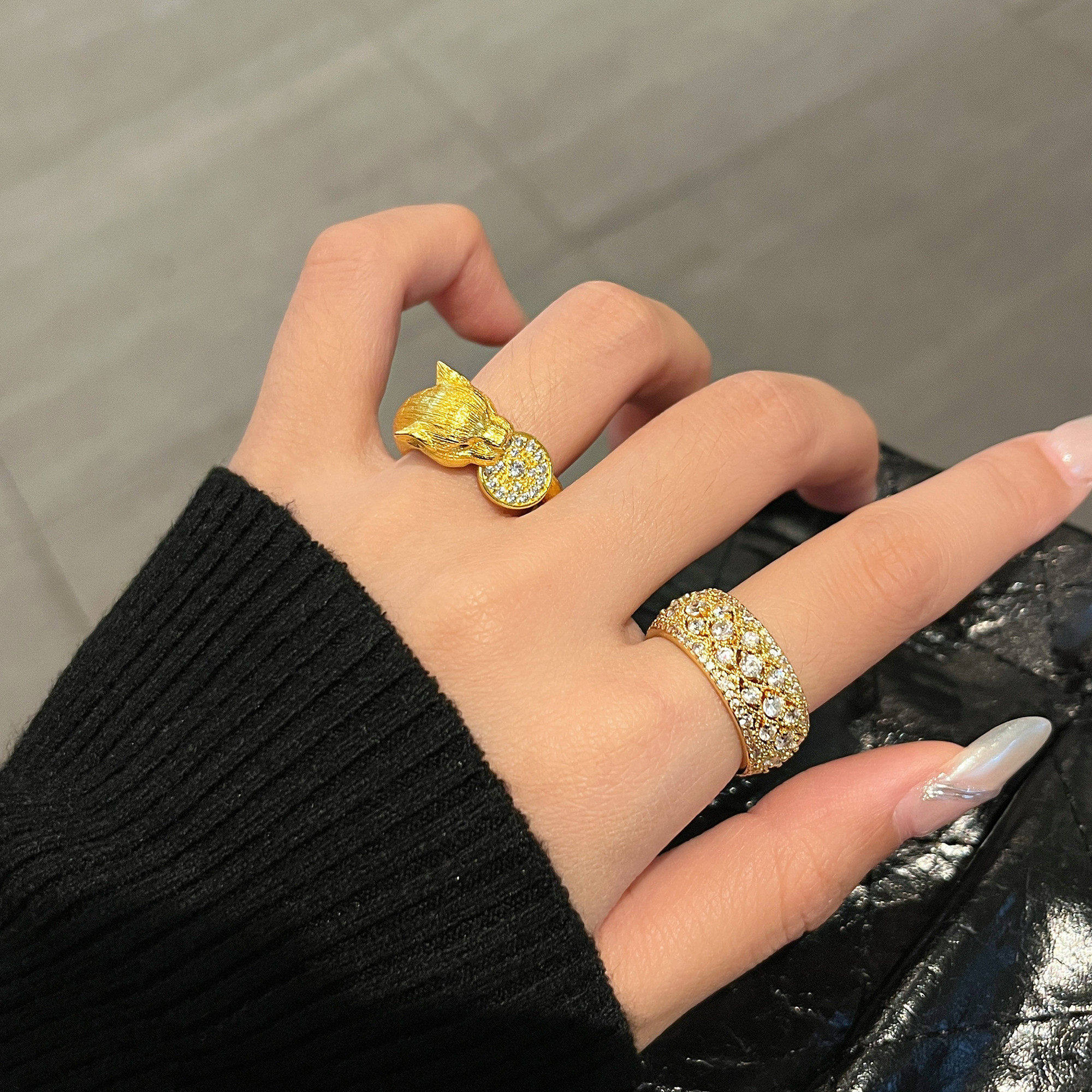 高定老钱风豹子头戒指女小众设计感高级轻奢食指戒时尚个性指环潮