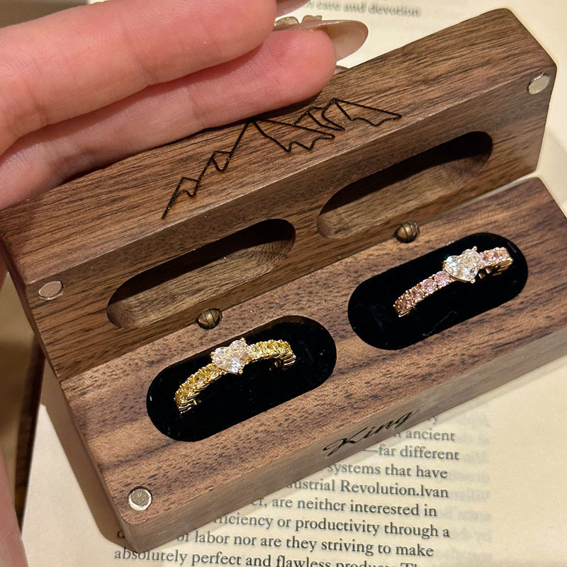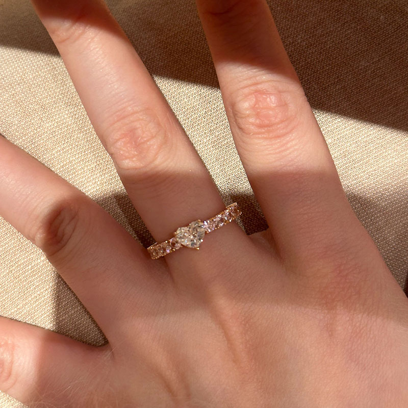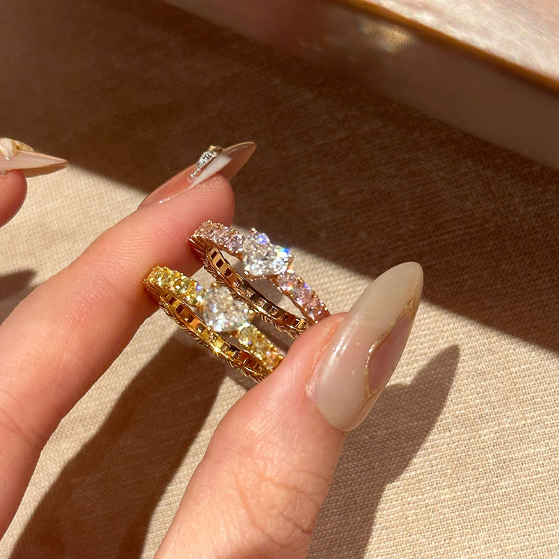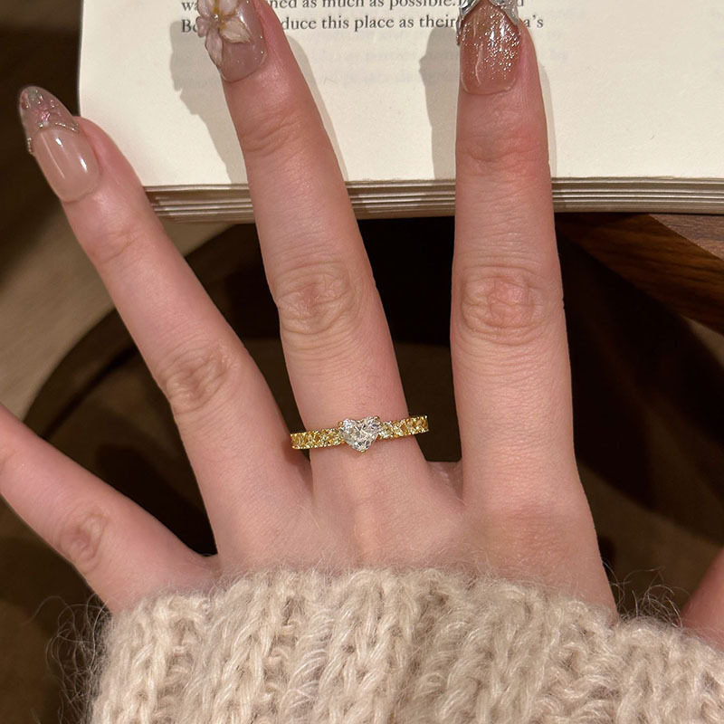小红书同款轻奢高级感爱心闪钻粉色排钻戒指黄排钻食指戒