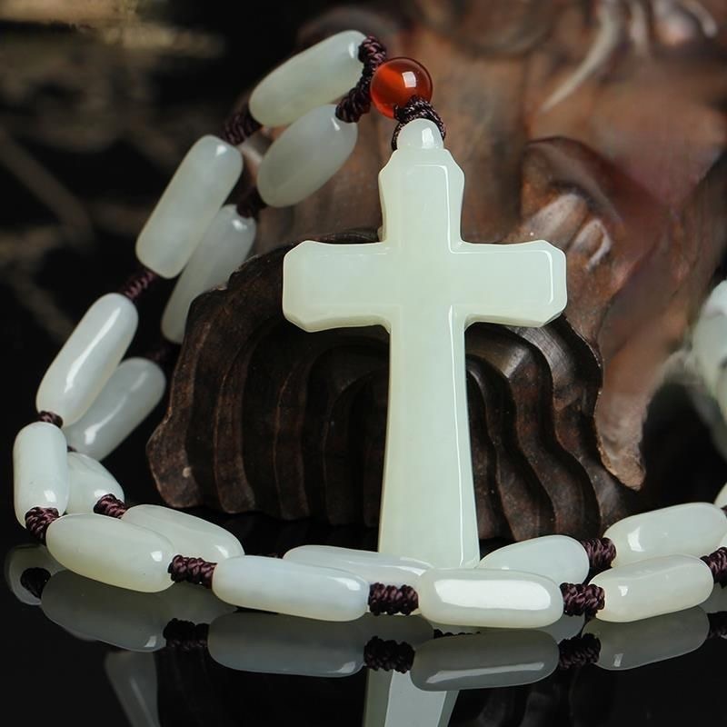 新款和田青白色玉十字架信物吊坠挂件玉石项链男女款挂坠百搭