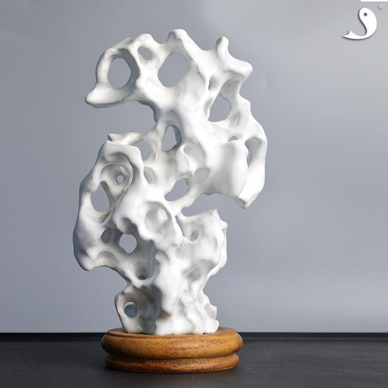 陶瓷太湖石山子摆件枯山水石头纯手工镂空雕刻假山石茶席笔架摆件