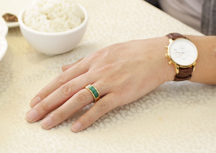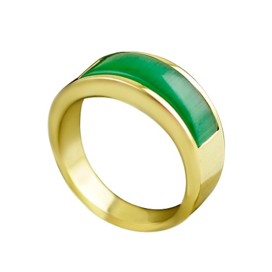 韩版简约黄金色绿色猫眼石钛钢戒指男个性潮人食指戒子女首饰礼物