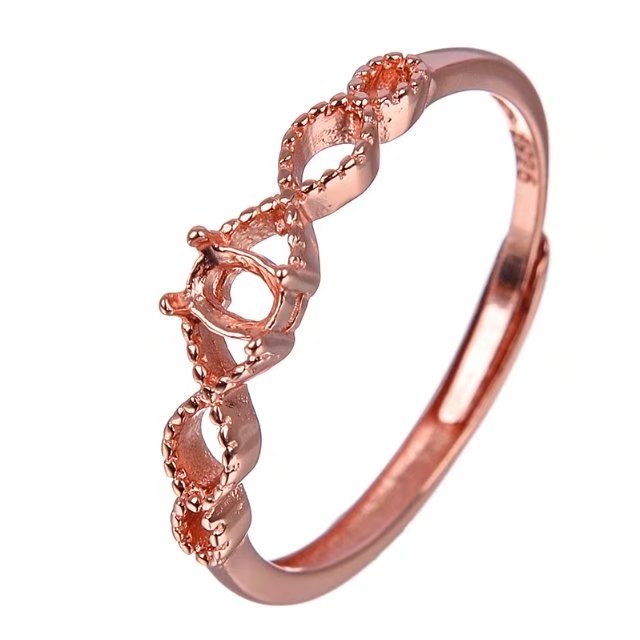 S925银女款戒指空托小尺寸3*4来石免费镶嵌翡翠碧玺红宝石刚玉