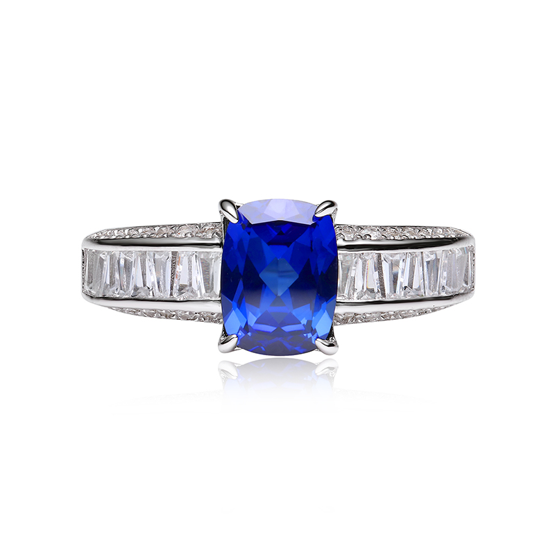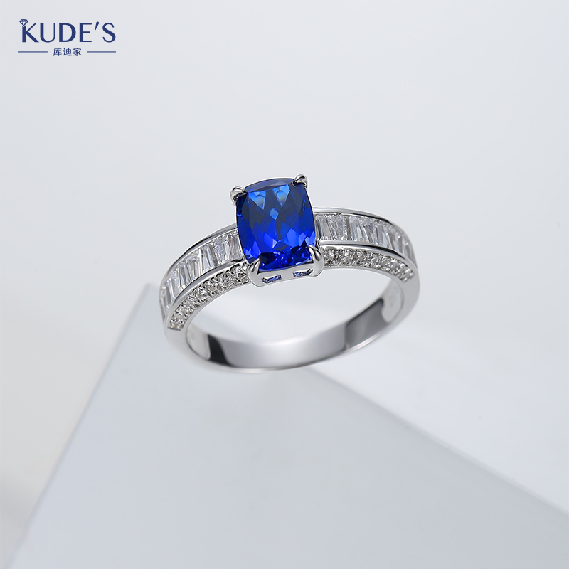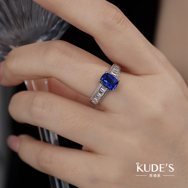 KUDE'S库迪家1.7克拉培育蓝宝石方枕形戒指女士高级镶嵌轻奢钻戒