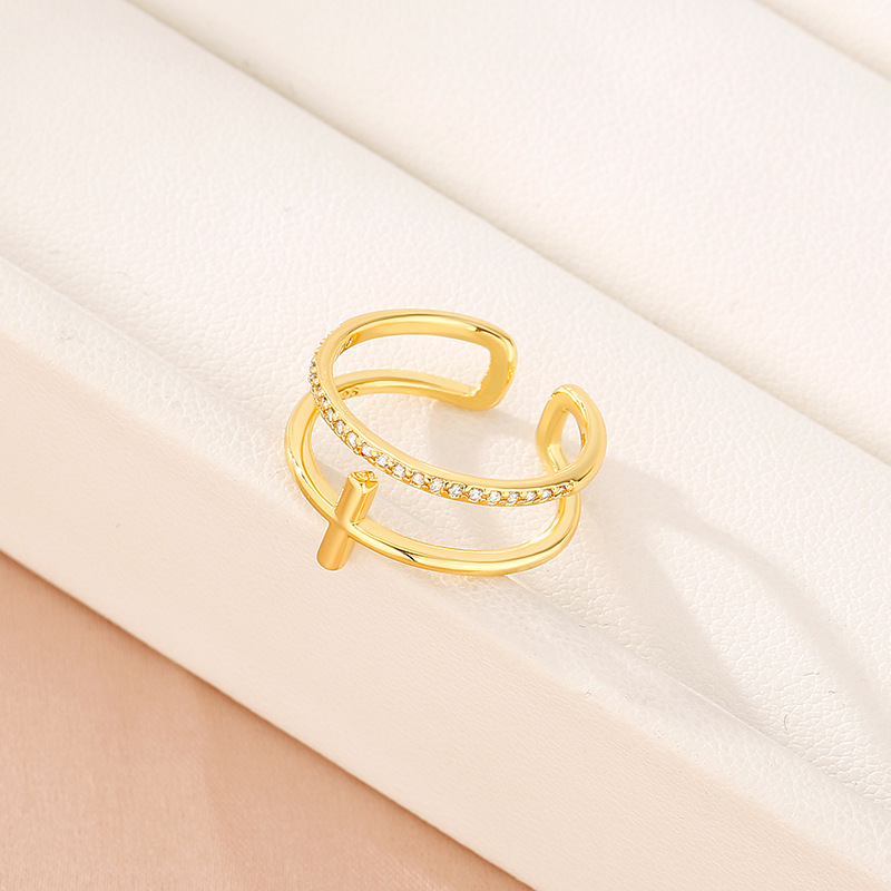 法国coopkoop韩国新款双层开口戒指女镶钻潮人可调大小不掉色