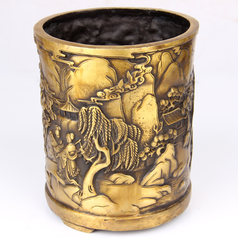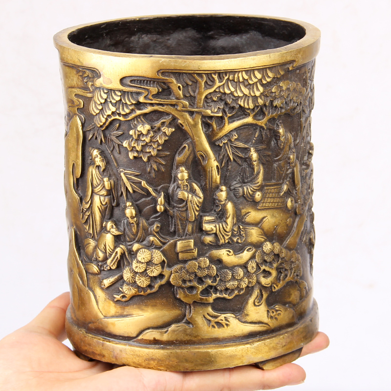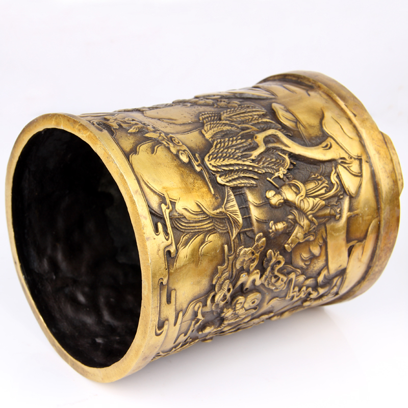 实心铜笔筒摆件 铜 竹节笔筒 龙I笔筒 马笔筒 老翁笔筒