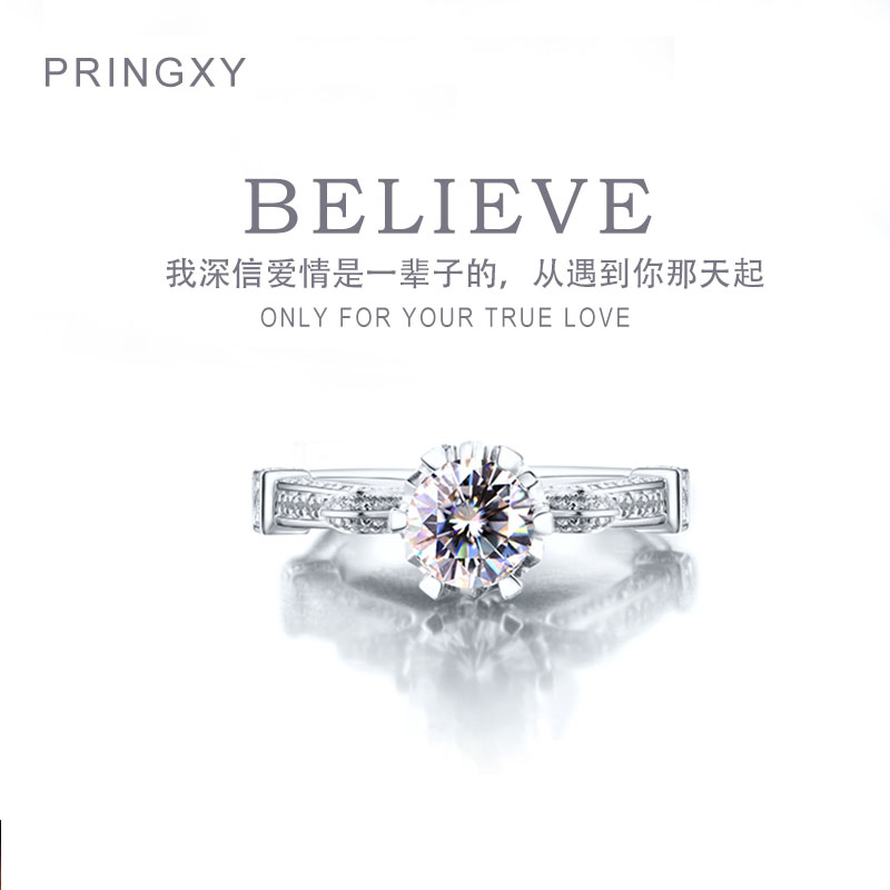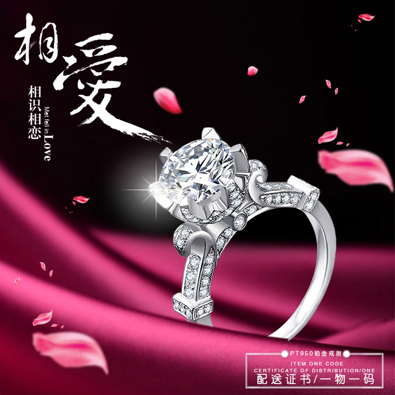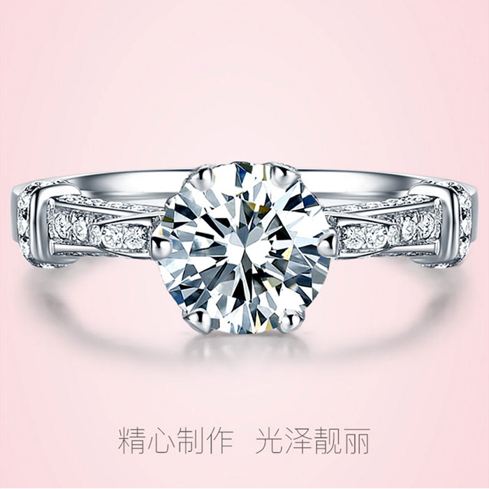 18K白金六爪皇冠群镶花苞钻石PT950铂金结婚莫桑石戒指花蕾钻戒女