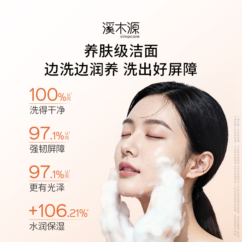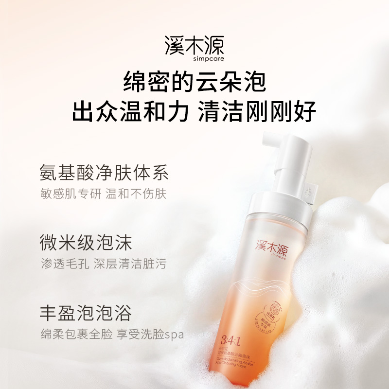 溪木源山茶花洁面泡沫氨基酸洗面奶慕斯敏肌洁面乳清洁毛孔温和女