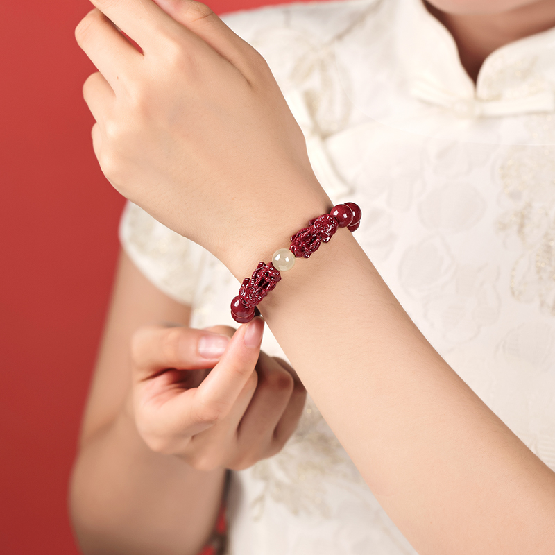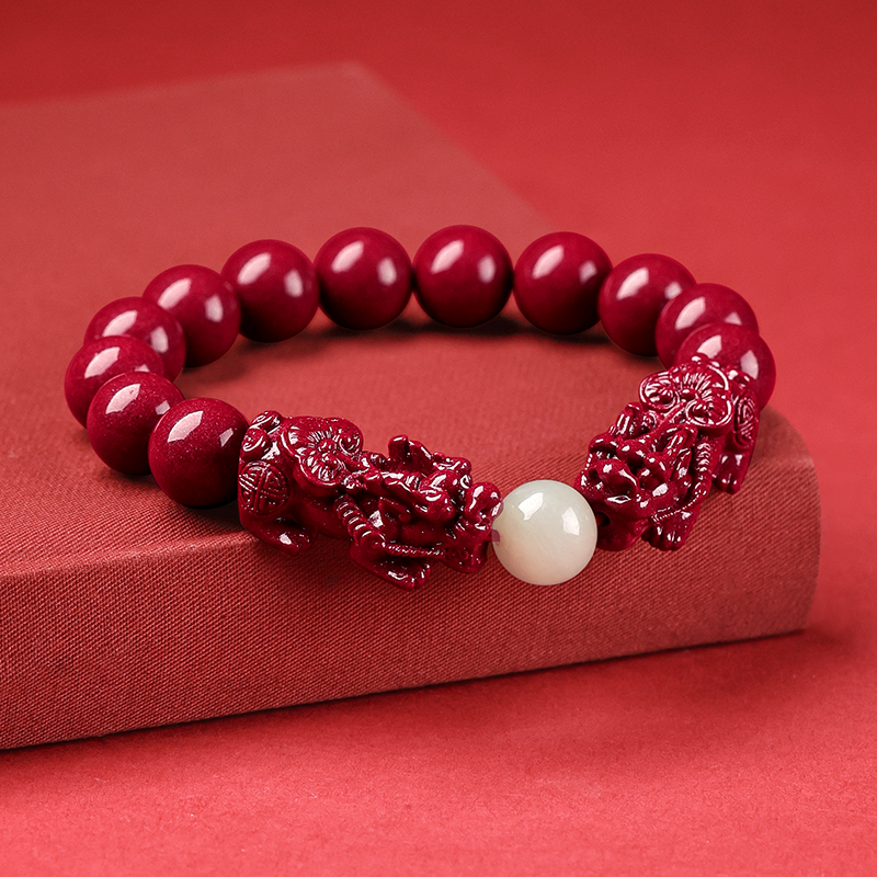 朱砂手串双貔貅和田玉珠男女款手链官方正品本命年转运珠礼物情侣