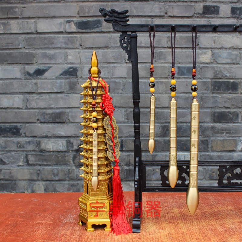 黄铜文昌笔 铜笔摆件金榜题名挂件文昌塔五帝钱书桌客厅