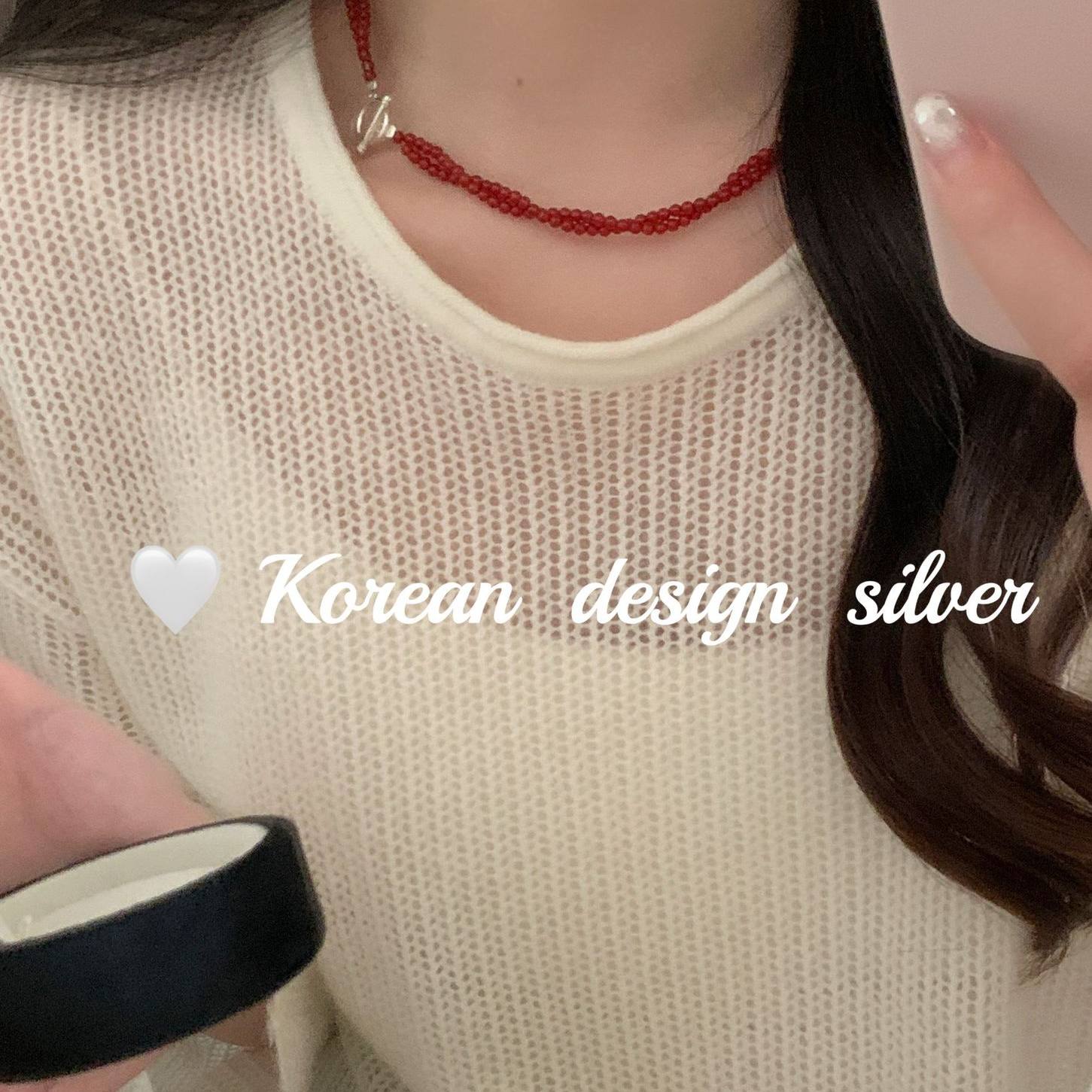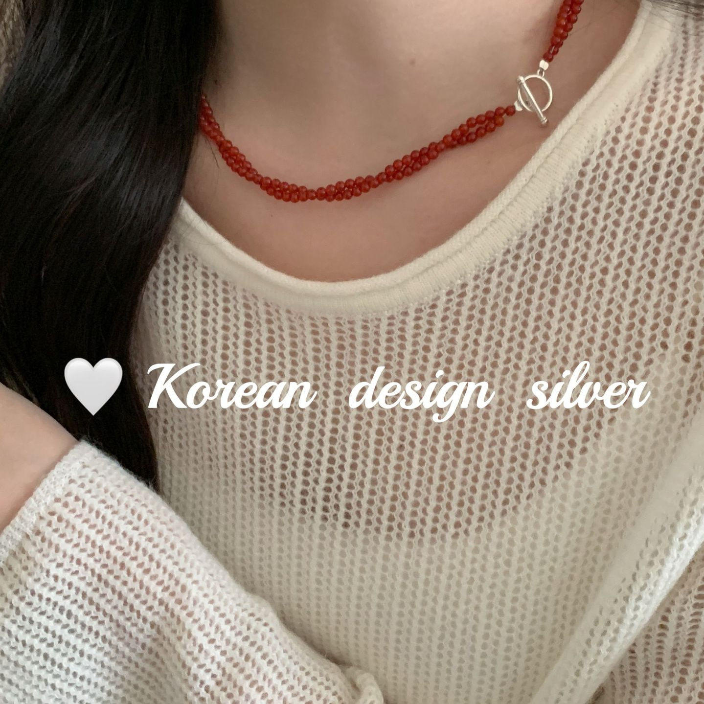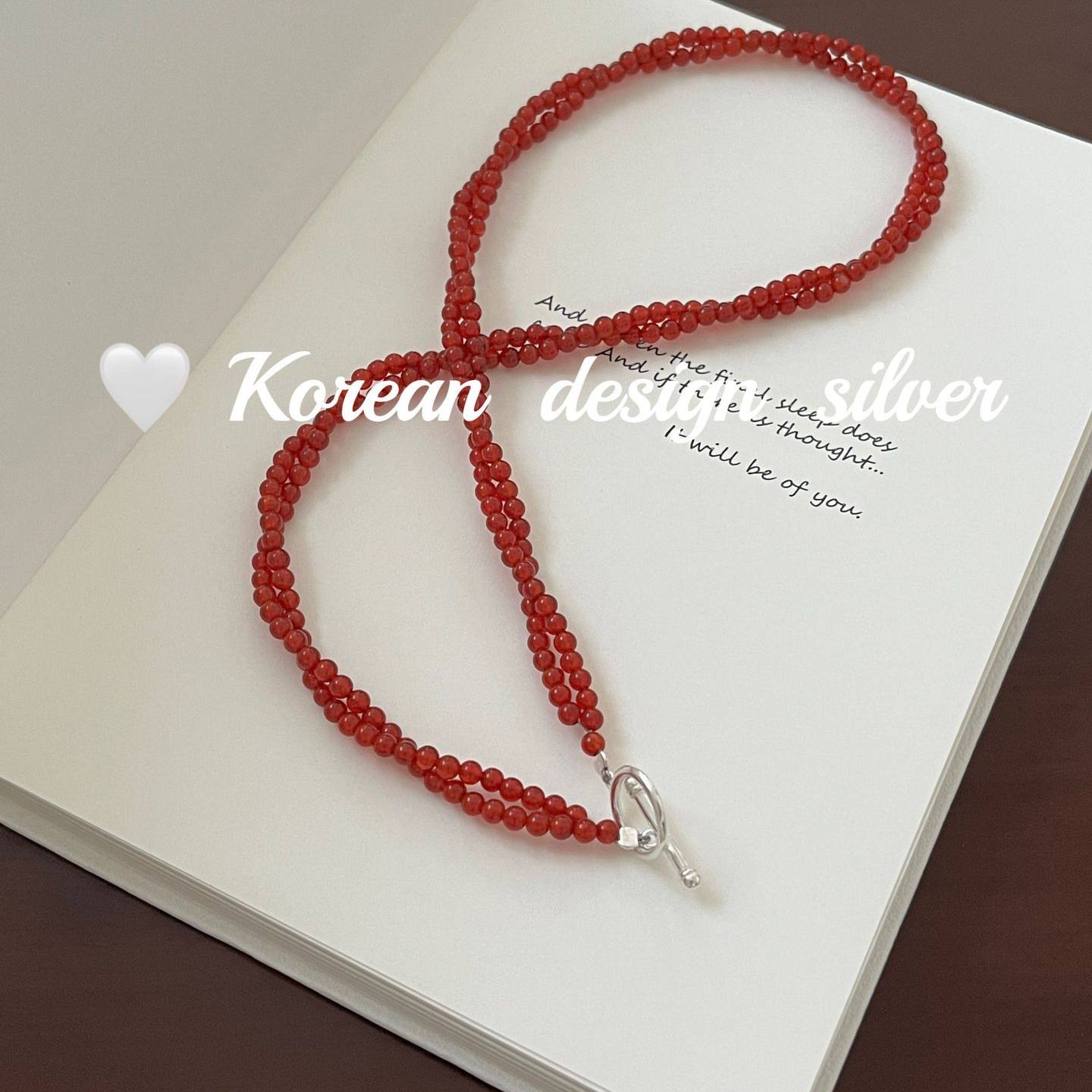 韩系小众设计ins风饰品 S925纯OT扣双层缠绕红玛瑙碎项链高级感女