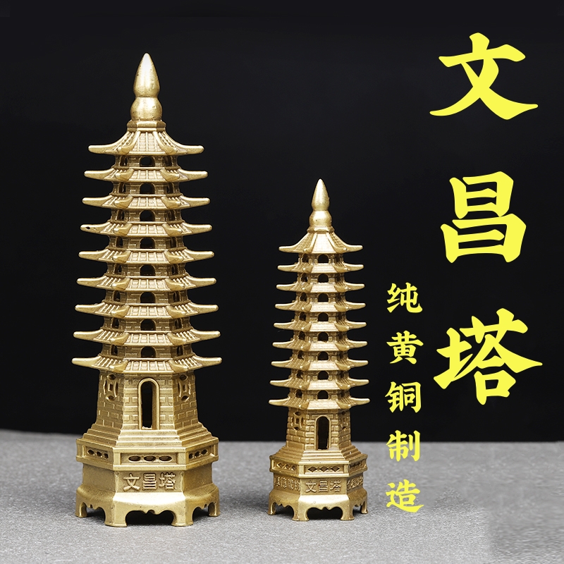纯黄铜文昌塔摆件书房桌子办公室老板台面公司前台摆放寅亥堂正品