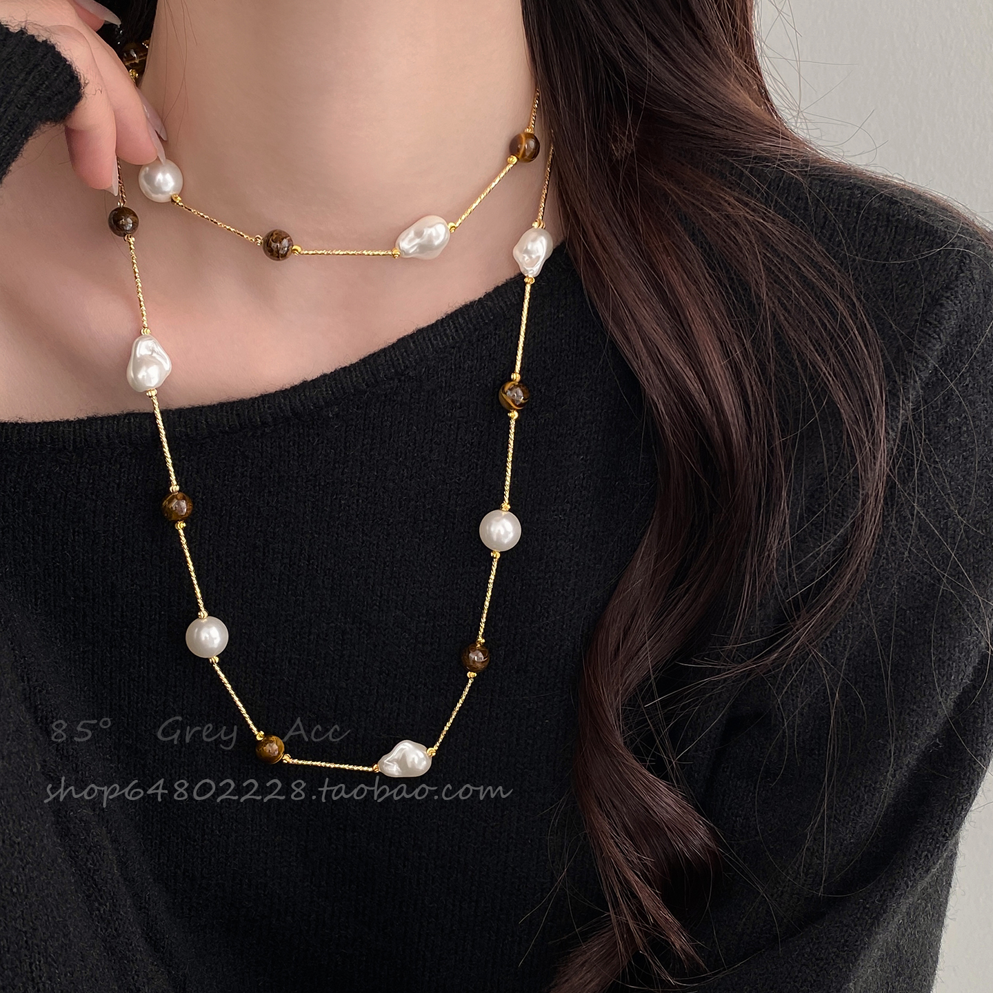 巴洛克珍珠项链长款毛衣链女秋冬简约百搭高级感轻奢小众叠戴配饰