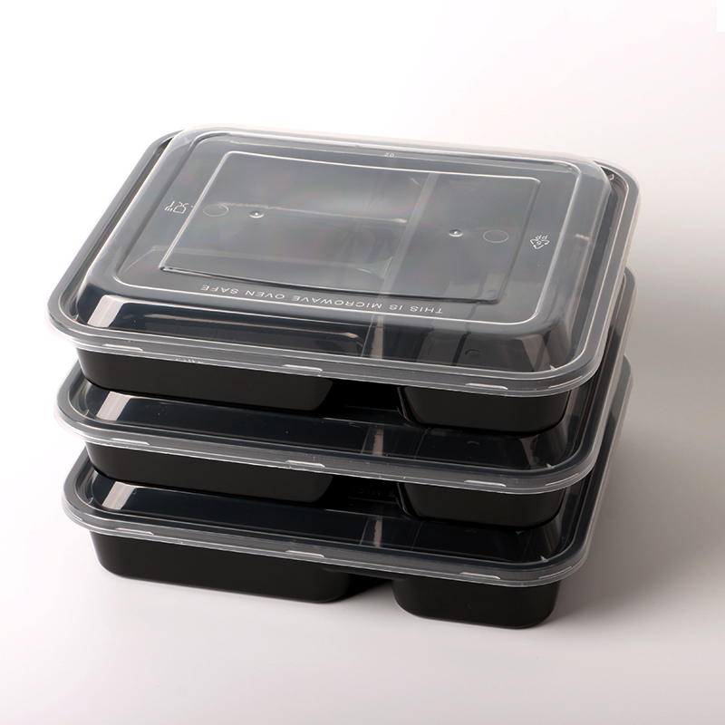 长方形1000ml一次性餐盒三格外卖打包盒分格四格快餐便当多格饭盒